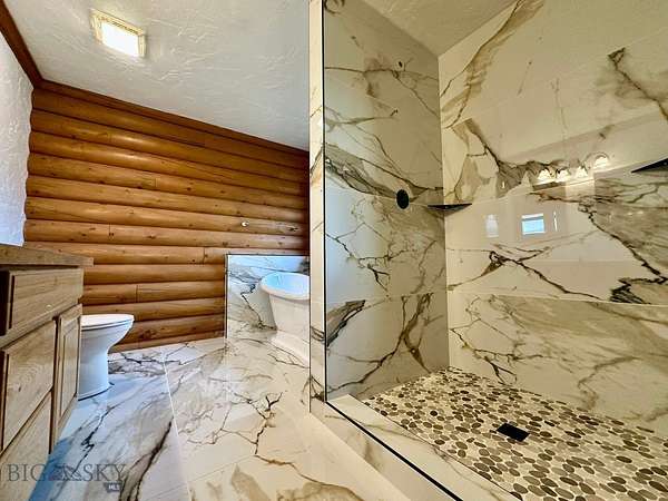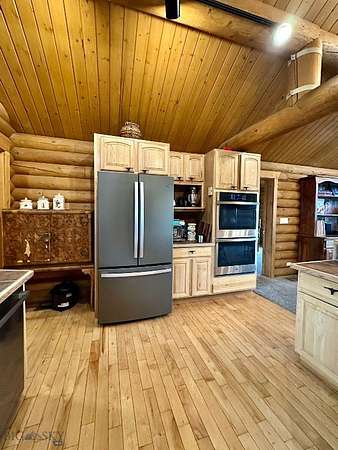 Creekside Montana Paradise - Log Home - Arena - Barn - 10.64 Acres Experience true Montana living on this stunning creekside property where Spokane Creek winds through fertile meadows framed by mature trees and mountain views. This 3-bed, 2-bath single-level log home is wheelchair accessible and professionally restored inside and out. Enjoy heated master-bath floors, new walk-in shower, on-demand water heater, gas heat, central A/C, Vermont Castings wood stove, and Corbond insulation. Logs refinished by PermaChink Systems, treated with Boracare, and decks sealed with Lifetime Wood Treatment. Property includes barn with stalls and pens, roping arena, RV hookups, 12-gauge electric fencing, and large trailer turnaround. New dual-chamber septic (6-bed permit), owned 1,000-gal propane tank, auto backup generator, and 140+ trees on drip irrigation. Year-round creek, shared water rights, lush grazing, wildlife, apple trees, and nearby BLM trails. Adjacent 10+ acres available (MLS 406468, TBD Jimmy Green Rd.).