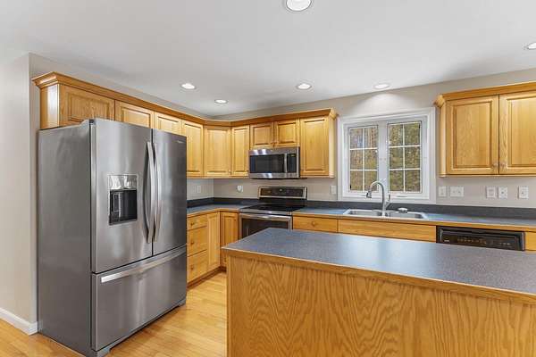 Welcome to this beautiful 4-bedroom Colonial in highly desirable Brentwood and the sought-after Swasey/Exeter school district. From the moment you arrive, the classic white picket fence, stately granite light posts, and newer roof create standout curb appeal. Inside, the thoughtfully designed layout offers both open-concept living and traditional spaces for flexibility. The spacious eat-in kitchen with center island flows seamlessly into a sun-filled family room featuring a vaulted ceiling and cozy gas fireplace—perfect for everyday living and entertaining. Formal living and dining rooms provide additional space for gatherings and special occasions. Upstairs, the generous primary suite includes a walk-in closet and beautifully renovated ensuite bath. Two additional bedrooms and a full bath complete the second level. The finished third floor offers excellent versatility as a fourth bedroom, office, bonus space, or guest retreat, plus a separate sitting area and unfinished storage with plumbing already in place for future expansion. Enjoy all four seasons from the expanded two-level composite deck overlooking a private wooded backyard—an ideal setting for relaxing or hosting friends and family. Added security of a portable generator connection. A convenient commuter location close to major routes on the Brentwood and Kingston border.