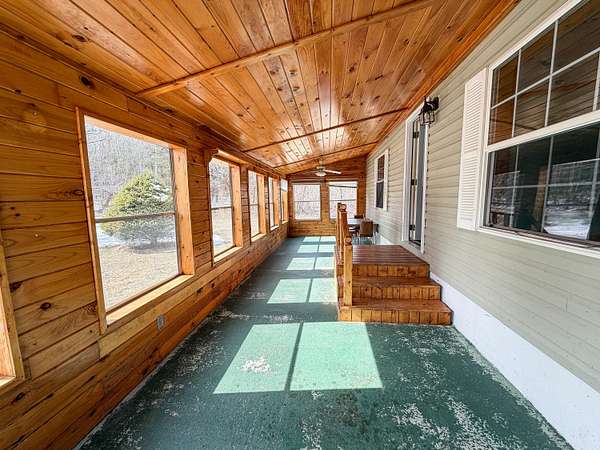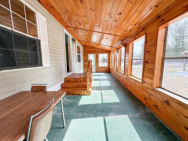 Privacy, river frontage, big heated garage, this home is a North Country dream! This home has some really nice additions that make it extra comfortable. Starting right at the door, a covered entrance is a great place to sit and enjoy the warm weather while still having some protection from the sun and rain. Leading into the home is a mud room that connects the heated 2+ car garage (with hot and cold water hook ups), and additional storage rooms for those who like to tinker; to the main home. Inside the home, the galley style kitchen has plenty of storage, with oak colored cabinets that are in great shape and leads to an open concept living room. A wood burning fireplace makes the home extra cozy, surrounded by beautiful woodworking and floor to ceiling windows that cast wonderful natural light into the space. A 3 season cedar enclosed porch adds additional square footage to the home, wrapped in windows making the space a wonderful area for hosting friends and family. The primary bedroom and bathroom, sit on opposite ends of the home allowing for privacy. With a little updating, this house will make a great home. BUT THE EXTERIOR. Woah. With 340 feet of river frontage along the Chazy River, this land is an exceptional place for those who like to fish and swim. Wildlife right on the heels of your own 2 acre lot, and surrounded by privacy. The last owner was a green thumb so perennials surround the property. This house will be blooming with some beautiful sights. There is a Briggs Stratton propane generator connected to the home, and the home is handicap accessible. The barn could be taken down depending on the mortgage qualifications, but this would be an additional space for storage with a little bit of love.