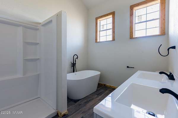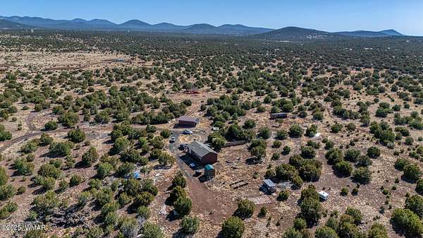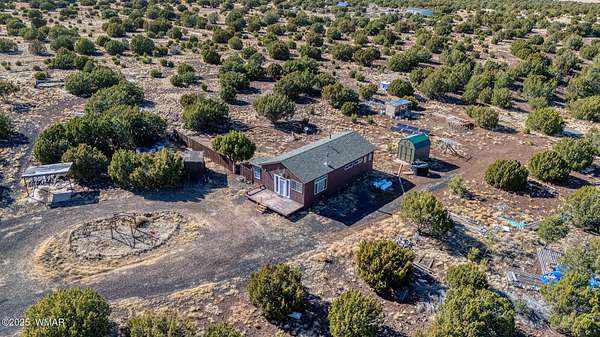 Off-Grid living at its finest! Invest in your lovely mountain cabin, hideaway!! This retreat has everything you need on 19.5 fully fenced acres, including private well, solar, & large 2+ car garage/ workshop. This charming home has adorable mountain cabin touches throughout, with vaulted tongue and groove ceiling, custom knotty pine cabinets and trim throughout, laminate flooring, updated primary bathroom with all new fixtures, shower, bathtub and vanity. Well has a new pump and solar has been newly upgraded. This property even has an RC racetrack! Come and enjoy the peace and serenity the White Mountains has to offer in style!