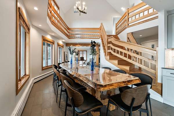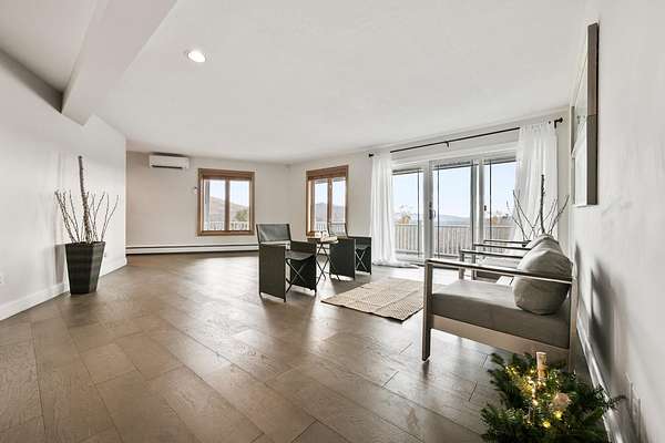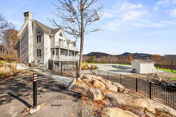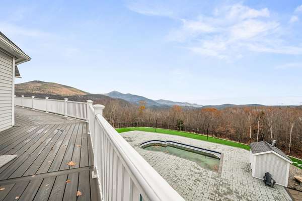 PANORAMIC SOUTHERLY MOUNTAIN VIEWS FROM THIS UPDATED 6,000+ SQ. FT. CONTEMPORARY. Set high above the Valley with views from Kearsarge in the east to the Moats in the west, this 4-bedroom, 6+ bath home offers an exceptional blend of space, comfort, and design. The main level is ideal for entertaining, featuring an updated kitchen, a dining area suited for large gatherings, a spacious living room with a stone fireplace, and a den tucked away from the main activity. Nearly every room offers direct access to the wraparound porch, where the mountain views take center stage. An open oak staircase leads to the upper-level mezzanine, where you'll find four generously sized bedrooms. Three are ensuite with 3/4 baths, while the fourth is served by a shared full bath. All bedrooms open directly to the wraparound deck, maximizing the home's dramatic southerly aspect. The lower level provides an additional gathering space with a fireplace, a hot tub, abundant room for recreation and relaxation, and two more 3/4 baths. From here, step outside to the expansive patio and the heated in-ground pool--your own private retreat. A heated two-car garage offers convenience and additional storage options. Ideally located close to multiple ski resorts and everything the Valley has to offer, this property is a unique opportunity in an unbeatable setting.