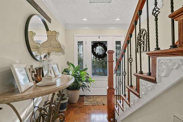 - Concrete Walks, Covered Front Porch, Garden Area, Hot Tub, Landscaping, Mature Trees, Outdoor Lighting, Pond(s), Trees