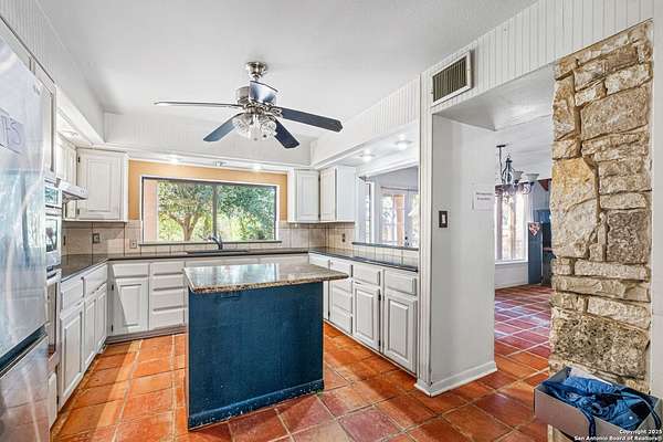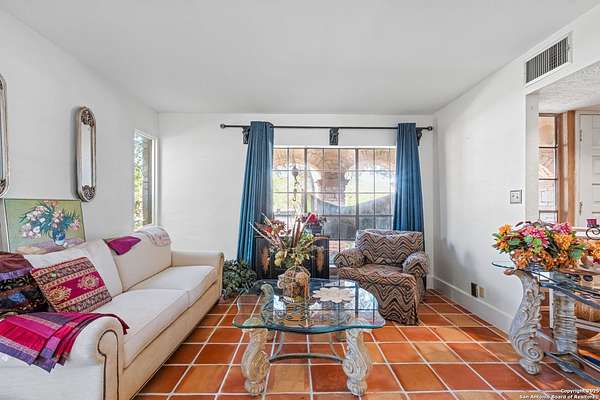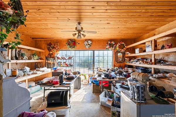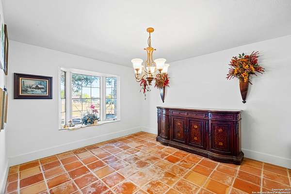 Five acres of Hill Country living just minutes from downtown Boerne. This 4-bedroom, 2.5-bath home offers space, flexibility, and the comfort of country living with convenient access to town. Inside, the home highlights classic Texas Hill Country style with Saltillo tile flooring, a floor-to-ceiling stone fireplace, and tall ceilings with wood beams. The layout includes a formal dining area, living room, and a separate sitting area for flexible use. A dedicated craft room adds extra space for hobbies, projects, or storage. A wrought iron staircase leads to the second level, where all four bedrooms offer generous closet space. Outside, the property features mature trees, open acreage, a barn/outbuilding, an inground pool, and a circular driveway for easy access. This home blends Hill Country character with everyday convenience and is being sold as-is. Located near Boerne's Hill Country Mile, local shops, and restaurants, this property connects the ease of town living with the open space of the Hill Country. Boerne ISD!