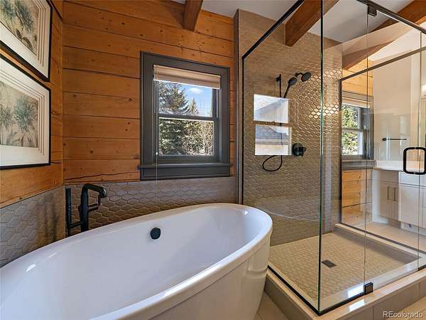 Freshly painted decks extend the living space outdoors and create an easy connection to the flat yard and gently rolling acreage. The walkout lower level offers additional room to relax or entertain with flexible space and a sophisticated bar area. Above the garage, the ADU adds valuable versatility for guests, studio use, extended stays or potential rental income. A detached barn/workshop of approximately 1,400 square feet provides opportunity for storage, workshop space, recreation, or hobbies, including room for a private pickleball court. With direct Beaver Brook Watershed trail access across from the driveway, this property is a standout in North Evergreen with space to live, work, and explore a true Colorado lifestyle.