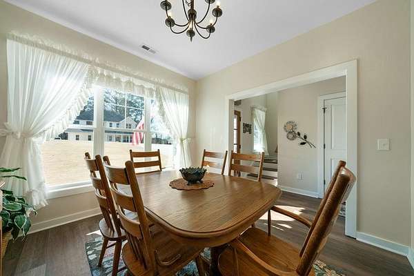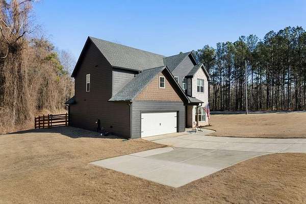 Set on a spacious 2-acre corner lot in Paulding County and built in 2023, this contemporary Craftsman beauty offers space, style, and upgrades throughout-no HOA and a fenced backyard for added convenience. Step inside to a welcoming foyer with a formal dining room, abundant natural light, and luxury vinyl plank flooring. The bright, open kitchen features quartz countertops, tile backsplash, stainless steel appliances, including a smart fridge, and an eat-in island with a microwave drawer. Enjoy the ample cabinetry and a walk-in pantry with extra storage, all open to the living room-ideal for everyday living and entertaining. The living room includes built-ins, a custom-built mantle, and cozy gas logs. A bedroom and full bath on the main level add flexibility for guests, home office needs, or multi-purpose use. Additional highlights include hardwired motion-sensor lighting on the steps and a large laundry room with a utility sink, cabinetry, and butcher block countertops. Upstairs, retreat to an oversized primary suite with a spa-inspired en suite featuring tile-to-ceiling finishes around the soaking tub and in the curbless walk-in shower. The HUGE walk-in closet includes a divider wall for added organization. The garage has epoxy-coated floors. Outside, enjoy the lush zoysia sod upgrade in the front, back, and sides-a standout feature that completes this move-in-ready property.