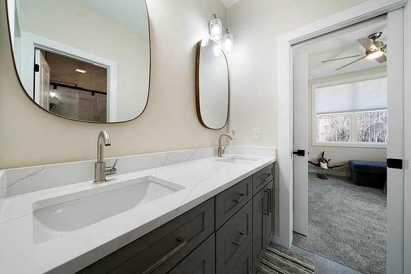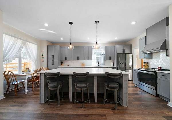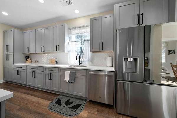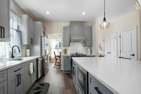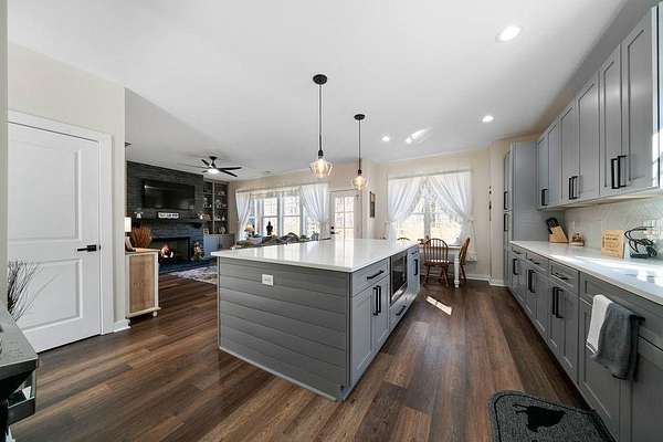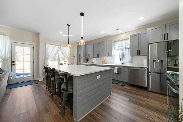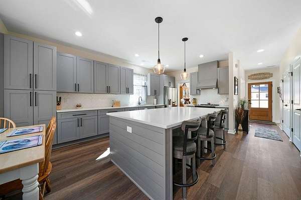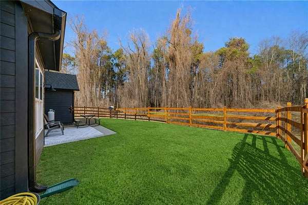Set on a spacious 2-acre corner lot in Paulding County and built in 2023, this contemporary Craftsman beauty offers space, style, and upgrades throughout-no HOA and a fenced backyard for added convenience. Step inside to a welcoming foyer with a formal dining room, abundant natural light, and luxury vinyl plank flooring. The bright, open kitchen features quartz countertops, tile backsplash, stainless steel appliances, including a smart fridge, and an eat-in island with a microwave drawer. Enjoy the ample cabinetry and a walk-in pantry with extra storage, all open to the living room-ideal for everyday living and entertaining. The living room includes built-ins, a custom-built mantle, and cozy gas logs. A bedroom and full bath on the main level add flexibility for guests, home office needs, or multi-purpose use. Additional highlights include hardwired motion-sensor lighting on the steps and a large laundry room with a utility sink, cabinetry, and butcher block countertops. Upstairs, retreat to an oversized primary suite with a spa-inspired en suite featuring tile-to-ceiling finishes around the soaking tub and in the curbless walk-in shower. The HUGE walk-in closet includes a divider wall for added organization. The garage has epoxy-coated floors. Outside, enjoy the lush zoysia sod upgrade in the front, back, and sides-a standout feature that completes this move-in-ready property.