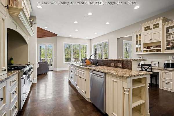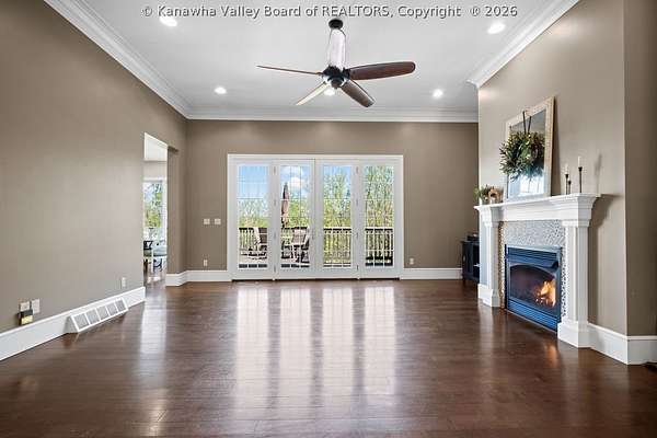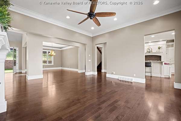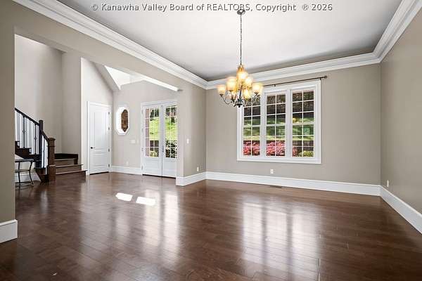 Welcome to 24 Quail Pointe Drive, a stunning luxury estate nestled in one of Charleston's most private and desirable gated communities. Situated on approximately three acres, this expansive residence offers over 7,000 square feet of beautifully designed living space. Features six bedrooms and 6 full 1 half baths. The main level showcases a primary suite, a gourmet kitchen, family room with cathedral ceiling with hardwood floors throughout. The finished walk-out basement features a custom bar and open recreation area, bedroom with attached newly remodled bath. Step outside to enjoy scenic mountain views. Additional features include a multi-car garage, new elevator and new roof and gutters. 24 Quail Pointe Drive is more than a home-it's a private retreat offering space, luxury, and timeless appeal.