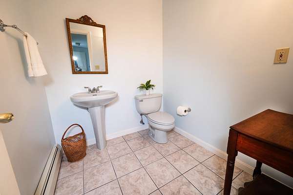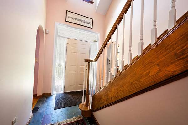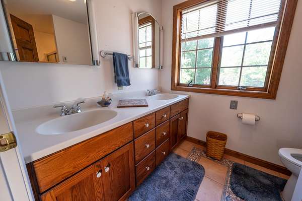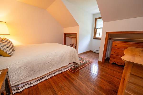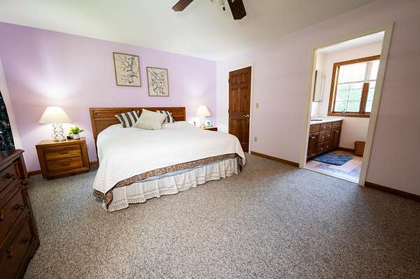 Here is a charming 5 bedroom home, circa 1999, situated on a low trafficked dead end, town maintained road. There’s plenty of elbow room (3,872 sf), and it offers amenities galore such as the unobstructed view of Gap Mountain, well known for its hiking and blueberry picking. Very well built, it features solid wooden doors, a whole house generator, whole house fan, and handsome hardwood floors and woodwork. There is a large first floor bedroom with full bath and 2 closets – one a walk-in. The living room is enhanced by a woodstove hearth and accesses a sunset-view rear deck. The formal dining room is in the front of the house. Just off the central hall is the comfortable fireplaced den. The wooden cabinet kitchen is fully applianced, close to a ½ bath and has a neat dining nook. There are 4 good-sized bedrooms and a full bath on the second floor. A hallway leads to a large private office with “hide away” alcove and a separate staircase accessing the tasteful office (den?) with its own entrance, but wait there’s more. The walkout basement has 2 finished rooms, a ½ bath, multi storage areas, the utility room, loads of closets and large family room. The attached oversized 2 car garage is heated; there’s a 7 zone BBHW oil fired heating system, the roof is 2 years new, and the landscaped grounds features a “lawn watering irrigation system” and a garden shed. Easy for us to show and easy for you to see. Come, take a look.
