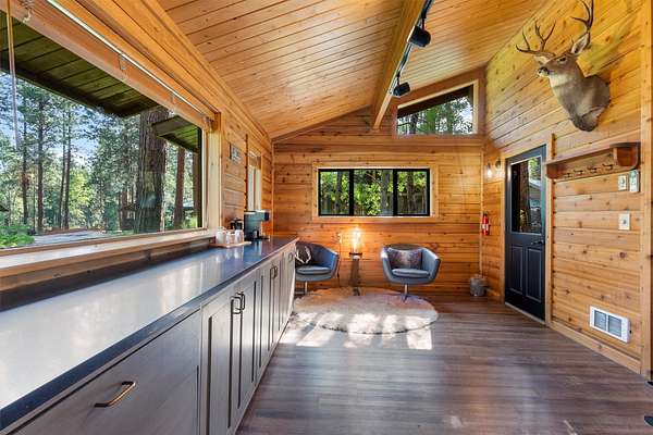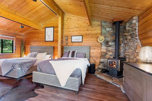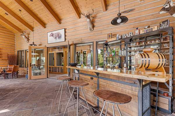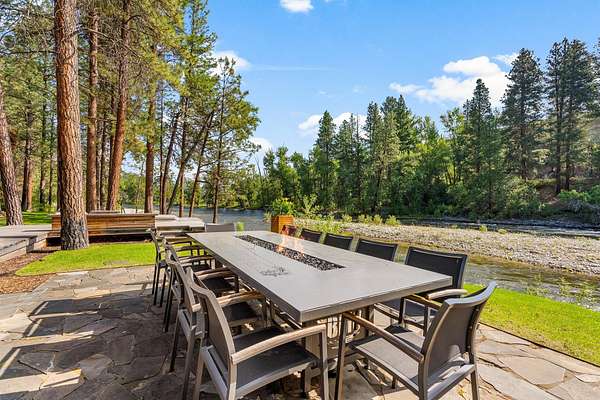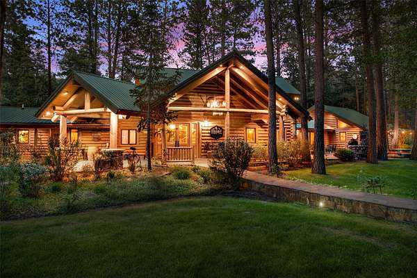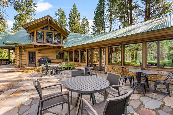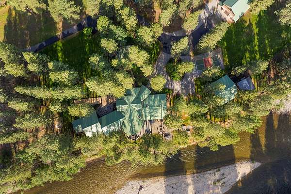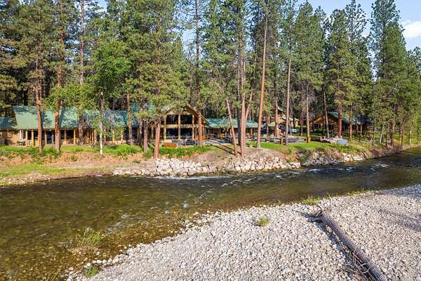 Set on nearly 22 acres with almost 2000 ft of prime Bitterroot River frontage, this unique Hamilton, Montana property features a rare combination of river access and high-end accommodations. At the heart of the property stands a stunning log home lodge, showcasing classic Montana style and craftsmanship throughout. Inside, you'll find attractive hardwood flooring, a beautiful river rock fireplace in the main common area, and a warm, inviting atmosphere that blends comfort and quality. The lodge includes three guest suites plus a deluxe primary suite, each room thoughtfully and stylishly appointed to provide rugged-yet-refined Montana character. Beyond the main lodge, the property features two well-designed cabins, a barn with apartment, and three luxury glamping huts, each one echoing the same attention to detail and rustic comfort found throughout. The entire property is being offered fully turnkey, including furnishings and equipment. Generous windows throughout the lodge bring in plenty of natural light and frame stunning views of the Bitterroot River, just steps from the back door. The spacious kitchen is designed to handle everything from casual meals to full-scale entertaining. High-end appliances, dual sinks, and ample cabinetry make it both functional and efficient, while attractive quartz countertops offer plenty of room for food prep and serving. A spacious dining area with a bar and TV creates the perfect gathering space for entertaining, relaxing after a day on the river, or hosting guests. With a total of 10 bedrooms with 15 beds, 9 bathrooms, and 9,284 square feet of finished space, this property provides options for a variety of uses. With nearly a third of a mile of Bitterroot River frontage, you'll have front-row access to some of Montana's best fly fishing, along with incredible views and a deep sense of privacy just minutes from downtown Hamilton.