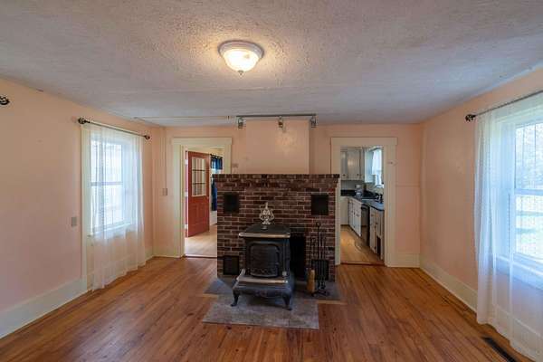 - Forced Air, Heat Pump, Wood, Wood Stove