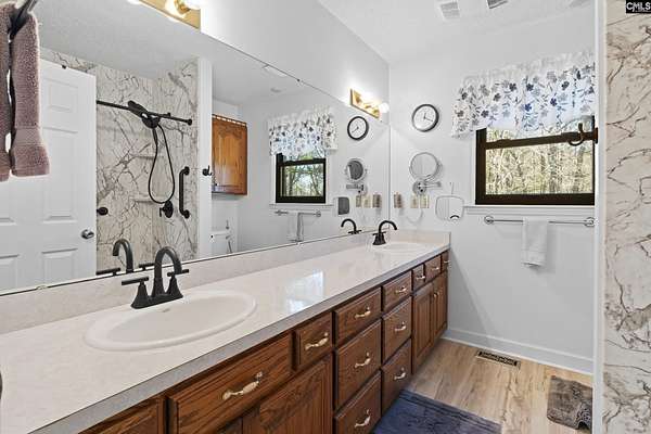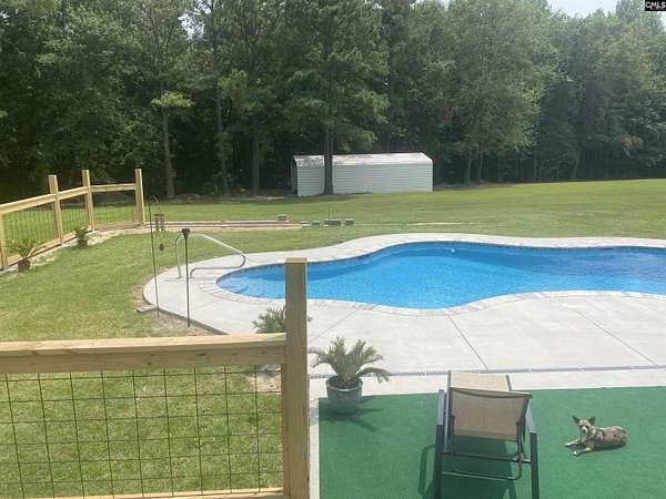 Welcome to your private retreat in Lugoff, SC, set on more than 4.5 acres of peaceful country living with no HOA, yet conveniently located for an easy commute to Fort Jackson, downtown Columbia and surrounding areas. This move-in-ready 4-bedroom, 3-bath home offers 2,068 square feet of modern comfort with a bright, open floor plan ideal for both everyday living and entertaining.The spacious gourmet kitchen features designer solid surface countertops, freshly refinished cabinetry, a movable island, and a premium refrigerator that conveys. Start your mornings on the charming covered front porch or unwind in the evenings on the private screened back porch overlooking your secluded property.Tucked away for privacy while still easily accessible from the main road, the property includes two deep wells with a new well pump, plus an additional shallow well. There is plenty of room for gardening, outdoor recreation, and even seasonal harvesting from a mature blackberry bush. An oversized two-car garage, a separate carport, and multiple storage buildings provide abundant space for vehicles, tools, equipment, and recreational toys.The sellers have invested approximately $150,000 in upgrades, including a deep lagoon-style saltwater gunite pool with designer tile surround, new Andersen windows throughout, new LVP flooring in the main living areas, refinished kitchen cabinets, a newer dishwasher, upgraded lighting throughout, a remodeled downstairs bathroom, a new wood-burning fireplace insert, new front, back, and storm door and new screening on the spacious back porch.This exceptional property perfectly blends privacy, thoughtful upgrades, and everyday convenience. Schedule your private tour today before this rare opportunity is gone! Disclaimer: CMLS has not reviewed and, therefore, does not endorse vendors who may appear in listings.