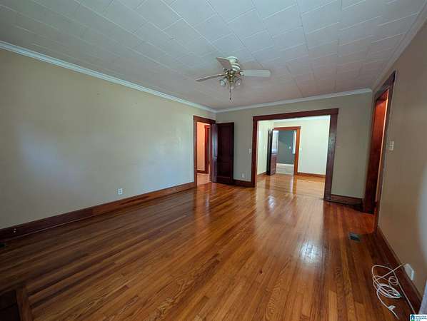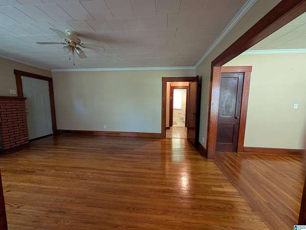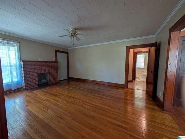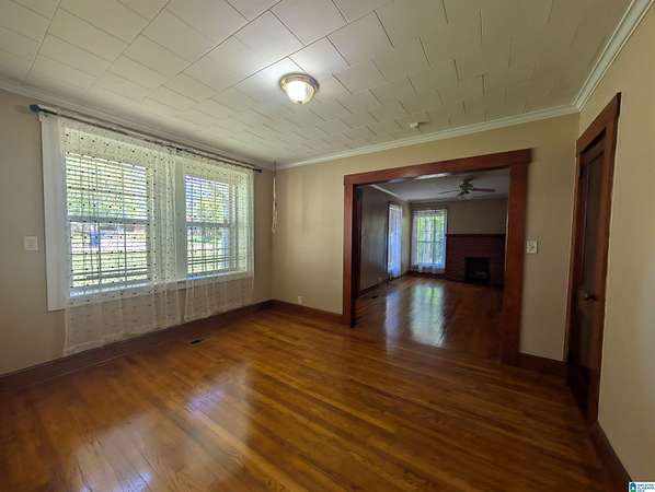 Est $791/moRare Find in Saks! Looking for room to roam without leaving the city? This charming 2 bedroom, 2 bathroom home blends classic character with incredible outdoor potential, featuring gorgeous wood flooring and trim throughout for a warm, timeless feel. The inviting layout includes a formal dining room leading into a cozy living area centered around a traditional brick fireplace.The property also features a functional storage building in the back, perfect for a workshop or lawn equipment. Whether you are looking for room to garden, space for outdoor hobbies, or a peaceful retreat with character-filled interiors, 24 West Glade Road is a must see!