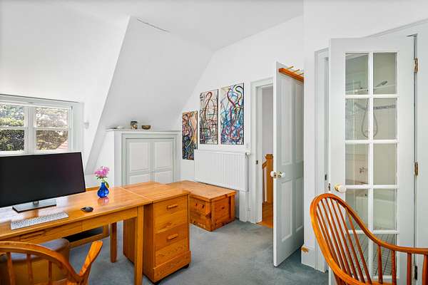 Charming, spacious contemporary cape with perennial gardens on 2.7 acres in quintessential Rockport. 3280 sf, 8 rooms, 3 bedrooms plus office, 4 baths. Natural environment with underground utilities, seasonal stream and views. Airlock entry, large kitchen-dining room with separate pantry. Bright sunny living room with gorgeous stone fireplace. Lower-level walkout bedrooms and family room for teens, mother-in-law apartment, or art studio. A quiet neighborhood with trails immediately accessible for hiking, biking, dog-walking. Quick access to harbors, schools and libraries, stores and restaurants in Rockport, Camden, and Rockland. Enjoy offerings at Maine Media Workshops, Bay Chamber Concerts, Farnsworth Museum, Strand Theater, Center for Furniture Craftsmanship, Merry Spring Nature Center, Camden International Film Festival and more. Boating, swimming, golfing, skiing, skating, tennis, pickleball, yoga, soccer, parks and playgrounds readily available.