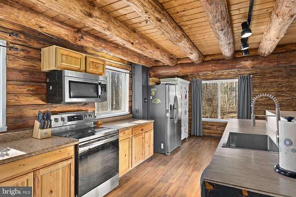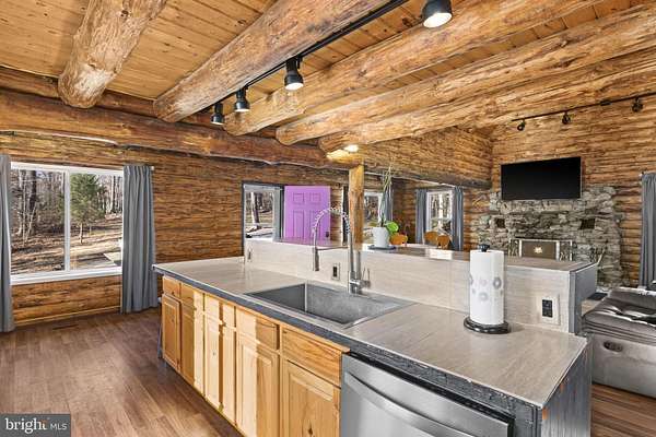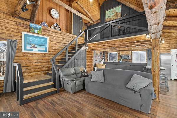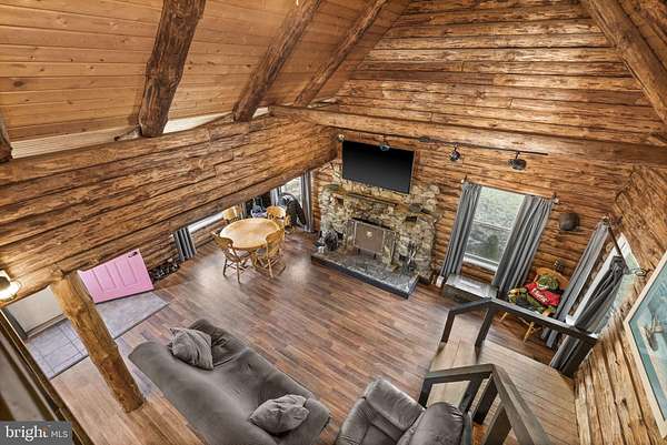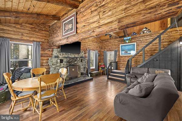 Beautifully maintained true log home nestled on 8+ wooded acres, offering exceptional privacy and a serene natural setting. The open-concept great room showcases classic log-home charm with a stone fireplace, rich wood accents, and abundant natural light. The lower level features an unfinished basement that provides excellent storage or future expansion potential. The home is equipped with central heating and air for yearround comfort. A spacious 600 sq. ft. detached garage with an upper attic room adds versatility for storage, hobbies, or workshop or lease option use. The property includes 3 bedrooms and 2.5 bathrooms, supported by a septic system rated for a 3bedroom home. Outdoor living shines with a large hardscaped entertainment area, perfect for gatherings. A unique bonus is the 200yard shooting range located on the property. An active stream runs along the back, enhancing the peaceful atmosphere. Situated at the end of a culdesac, this property combines privacy, functionality, and rustic charm.