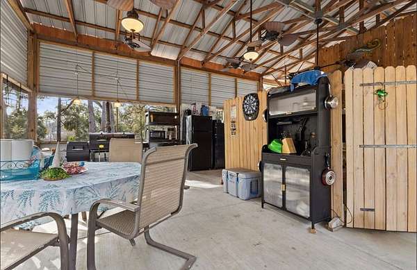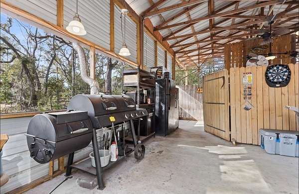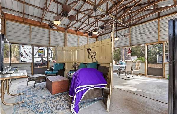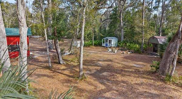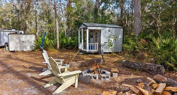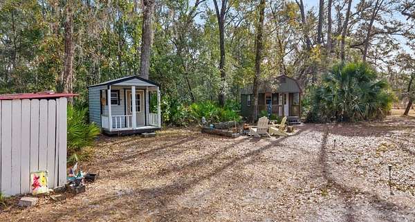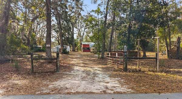 This gorgeous and unique property is set along a paved road and fully fenced for privacy, this 2.5-acre parcel offers a rare blend of openness, natural beauty, and peaceful seclusion. The land is beautifully opened up and accented by large, mature trees, creating a serene setting that feels both expansive and private. A walking trail follows the perimeter, allowing you to enjoy the full scope of the property while taking in the quiet surroundings and natural landscape. The property is well-equipped with a private well and septic system, making it ready for immediate use. Multiple structures provide flexibility and functionality, including a dedicated laundry shed, a separate shed with bedroom and living quarters, and a metal building with a concrete floor that serves as the main living space and kitchen. An active RV permit is currently available, offering additional options for living, hosting, or future plans. Conveniently located, this property is just 25 minutes from Chiefland, Florida, where you'll find Walmart, restaurants, and everyday amenities. Outdoor enthusiasts will love being within 10 minutes of the historic Suwannee River, ideal for kayaking and boating, and only 25 minutes from the Gulf of America, known for excellent fishing, boating, and coastal recreation. Whether you're looking for a private homestead, a recreational retreat, or a versatile property surrounded by nature, this unique acreage delivers space, tranquility, and the best of Florida's outdoor lifestyle. Call today for a showing and a chance to own a piece of Old Florida!