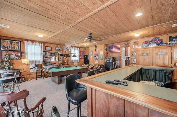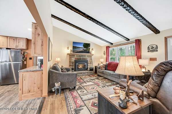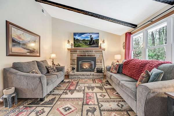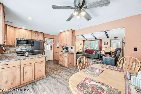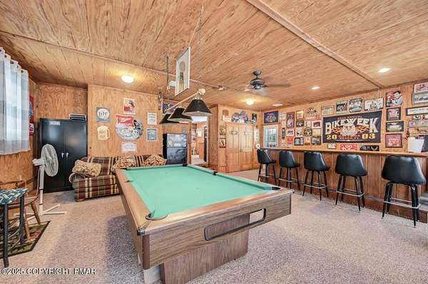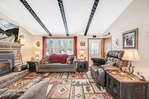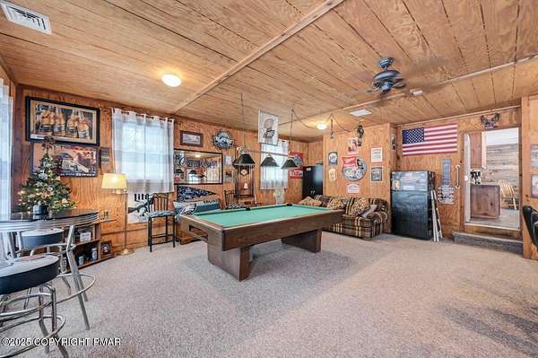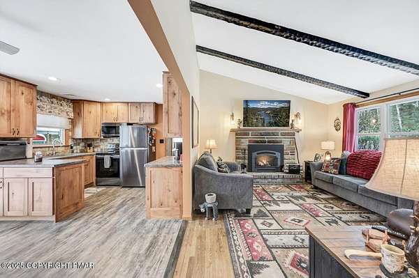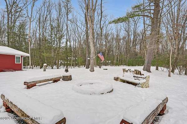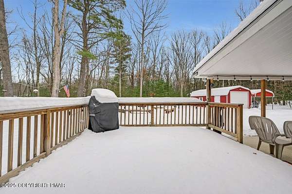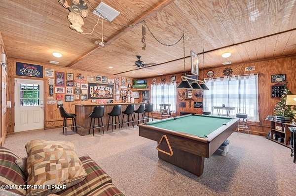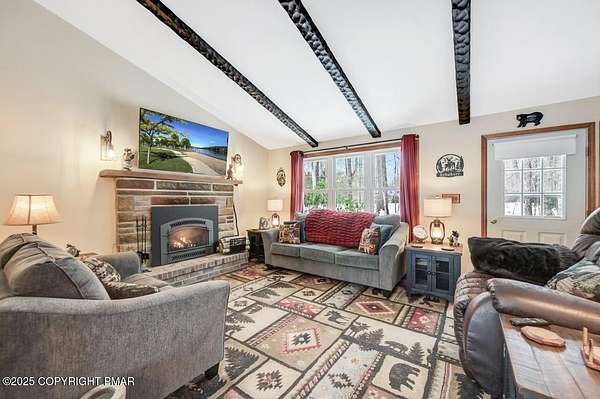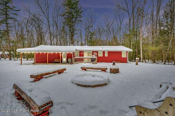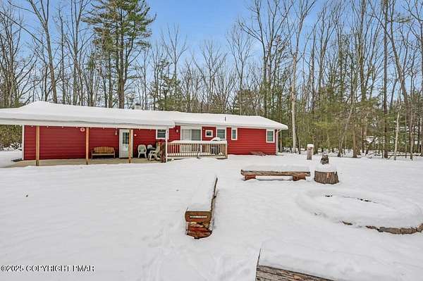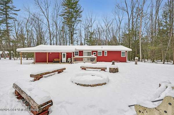 Modern Comfort Meets Timeless Style in this Updated 3BR Ranch w/ Large Game Room includes Propane Stove, Bar & Pool Table, Designed for Easy weekdays & Effortless weekends. A Vaulted Ceiling with Exposed Wood Beams in the Living Room sets a Warm, Airy Tone, while a Propane Stove insert brings Cozy Glow on Cool Evenings. Central Air Conditioning keeps life Comfortable during the Summer. The septic was updated in 2017 which adds peace of mind. Step out for coffee on the Nice Size Deck or Linger after Sunset around the Large Firepit with Friends. Tinker, Train, or Simply Spread Out: The Full Unfinished Basement Offers Room for Storage Now & Future Possibilities Later...Your Choice. A 14x28 Detached Garage/Shed with Electric is Ideal for Projects and Gear while the Covered Patio Doubles as a Carport or Shaded Outdoor Lounge. When it's Time to Play, Enjoy Community Amenities including a Pool, Lake, and Pavilions for Weekend Fun Without the Drive. Bright Natural Light, Thoughtful Updates Throughout and Flexible Spaces define this Move-in-Ready Home. Love where you Live. Schedule your Private Tour Today.