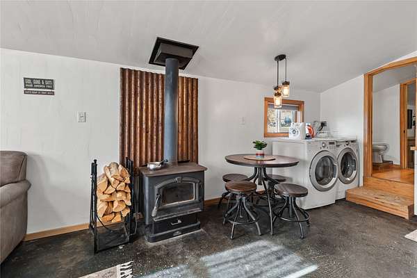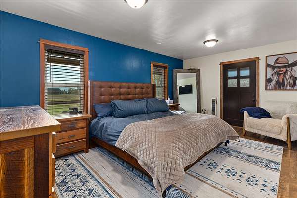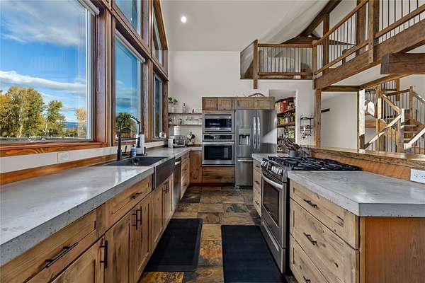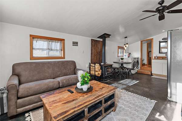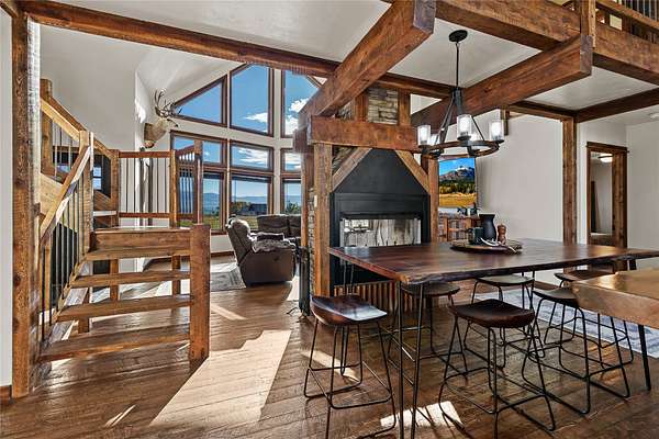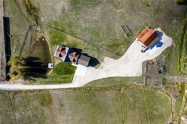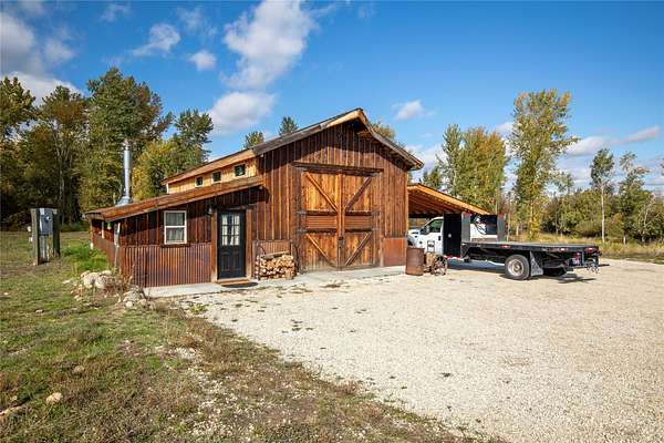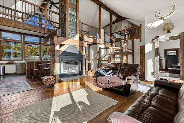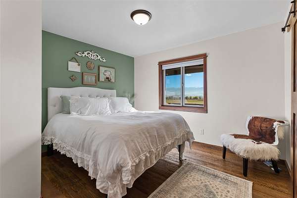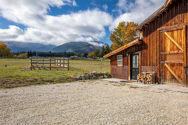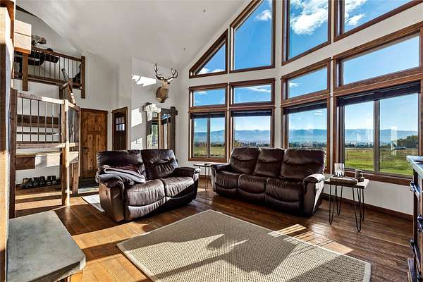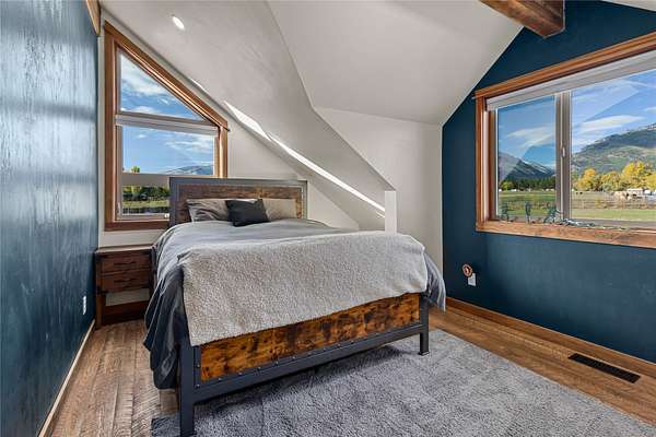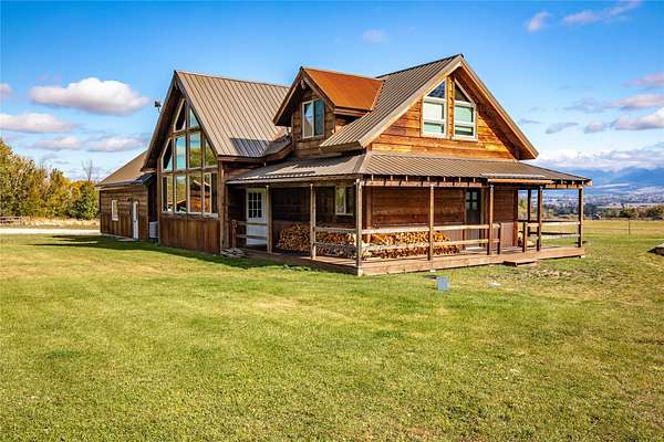 Experience Montana living at its finest in this beautifully designed custom home built in 2019. Offering 2,077 square feet with 4 bedrooms and 3 bathrooms, plus a separate 480-square-foot guest quarters featuring 1 bedroom and 1 bathroom, this property provides space, style, and flexibility. Inside, you'll find stunning rough-sawn wood floors, sleek steel railings, and an inviting open floor plan. The living area boasts floor-to-ceiling windows framing incredible views of the Sapphire Mountains and a striking wood-burning fireplace that divides the living and kitchen spaces. The kitchen is a true centerpiece, showcasing cement countertops, stainless steel appliances, a butler's-style pantry, and an abundance of windows overlooking the Blodgett Canyon. The main level boasts the primary bedroom with ensuite bathroom as well as a guest bedroom. Upstairs level provides two bedroom, sitting area, and a bathroom. Set on 6.21 picturesque acres, this property includes two ponds, irrigation rights, a great shop, and plenty of space to enjoy Montana's outdoor beauty. Located just minutes from Hamilton, this home perfectly blends privacy, craftsmanship, and breathtaking views.