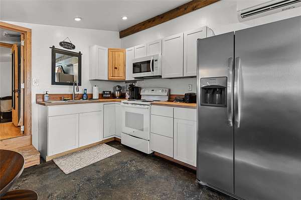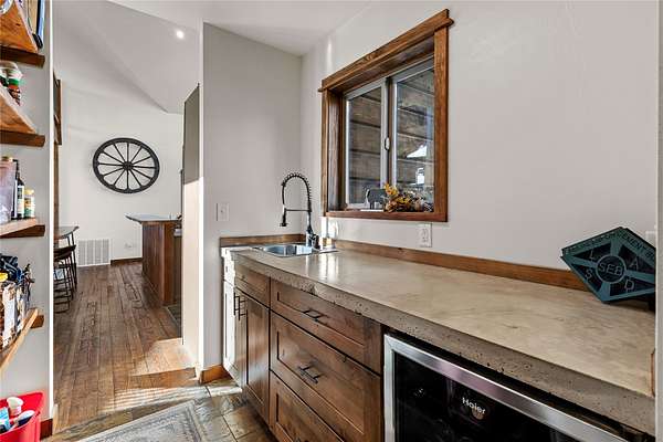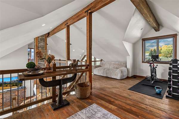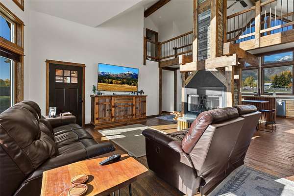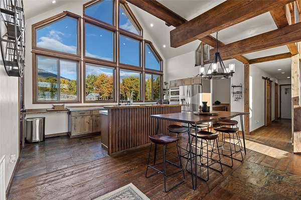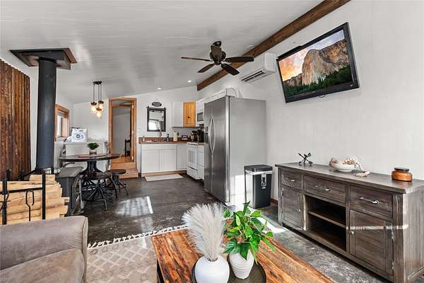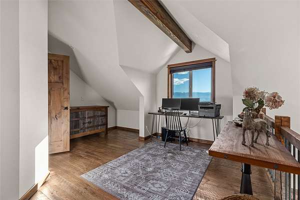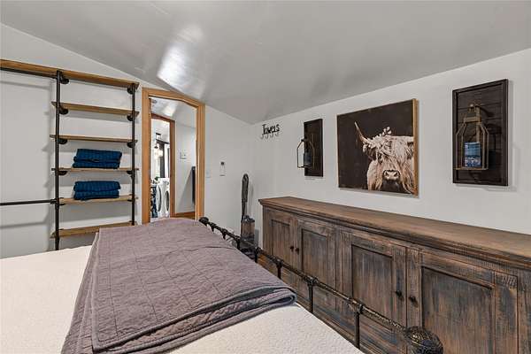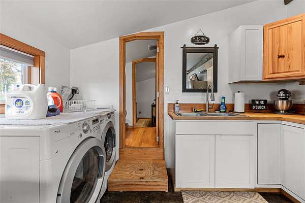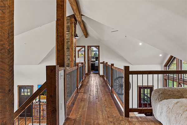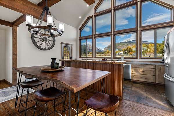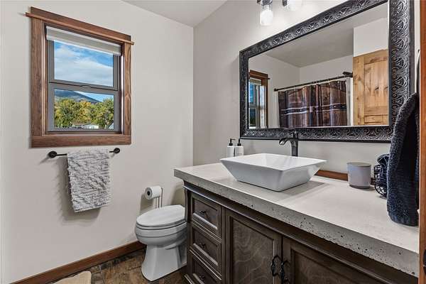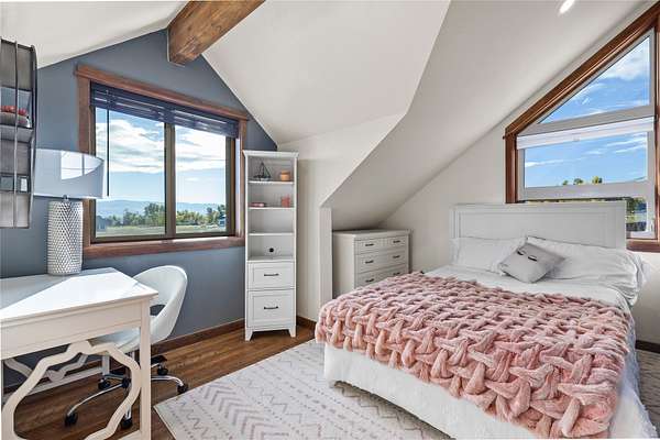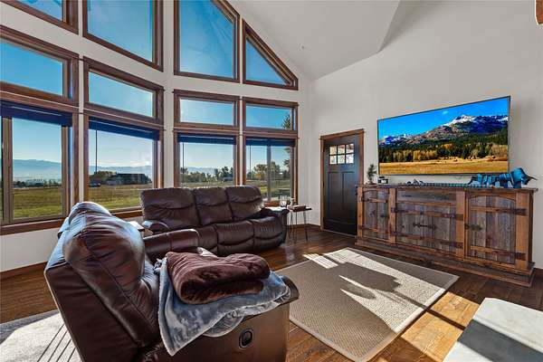 Experience Montana living at its finest in this beautifully designed custom home built in 2019. Offering 2,077 square feet with 4 bedrooms and 3 bathrooms, plus a separate 480-square-foot guest quarters featuring 1 bedroom and 1 bathroom, this property provides space, style, and flexibility. Inside, you'll find stunning rough-sawn wood floors, sleek steel railings, and an inviting open floor plan. The living area boasts floor-to-ceiling windows framing incredible views of the Sapphire Mountains and a striking wood-burning fireplace that divides the living and kitchen spaces. The kitchen is a true centerpiece, showcasing cement countertops, stainless steel appliances, a butler's-style pantry, and an abundance of windows overlooking the Blodgett Canyon. The main level boasts the primary bedroom with ensuite bathroom as well as a guest bedroom. Upstairs level provides two bedroom, sitting area, and a bathroom. Set on 6.21 picturesque acres, this property includes two ponds, irrigation rights, a great shop, and plenty of space to enjoy Montana's outdoor beauty. Located just minutes from Hamilton, this home perfectly blends privacy, craftsmanship, and breathtaking views.