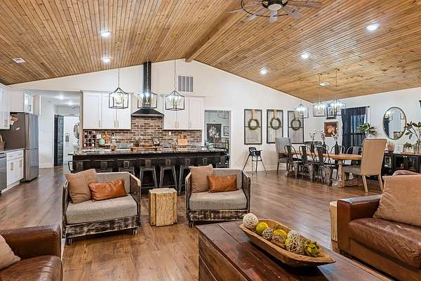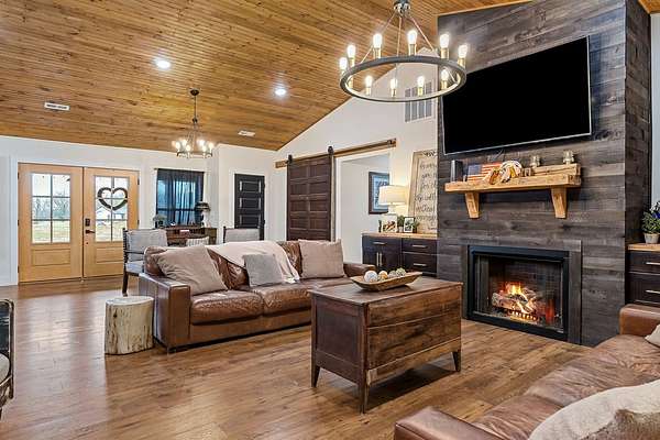 Welcome to your dream home with 5 acres located 5 minutes from Downtown Livingston, 2 minutes from Hwy 111, and 15 minutes to Cookeville. This stunning 5 bedroom, 3.5 bath custom- built beauty offers 3,360 sq ft of thoughtfully designed living space with high-end finishes throughout. The home is all one level featuring gourmet kitchen with custom cabinetry, granite countertops, and premium appliances- perfect for entertaining or everyday luxury. The primary suite is a true retreat with a spa-inspired bath and large walk in tile shower. An additional bonus area that adds even more space for work, play, or relaxation. Outside, enjoy the peaceful mountain views from your covered back patio or venture down to the water's edge for fishing, kayaking, or simply soaking in the view of the Roaring River. This one-of-a-kind home blends comfort, style, and nature- all in one package.