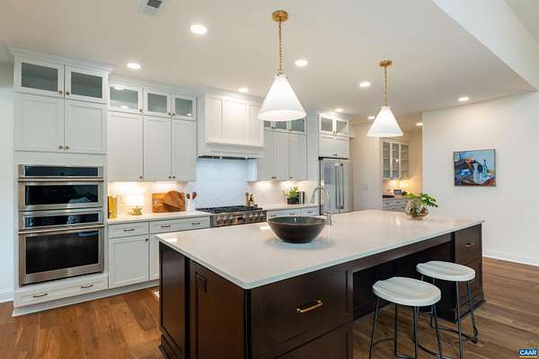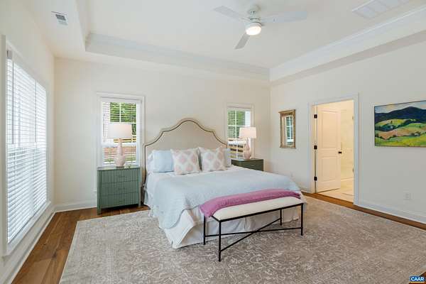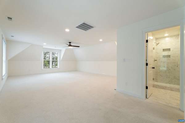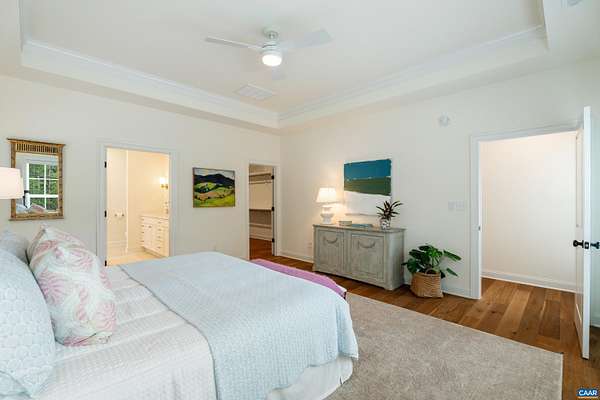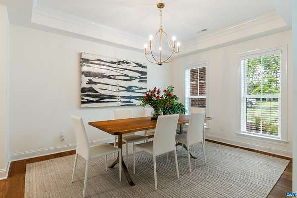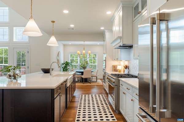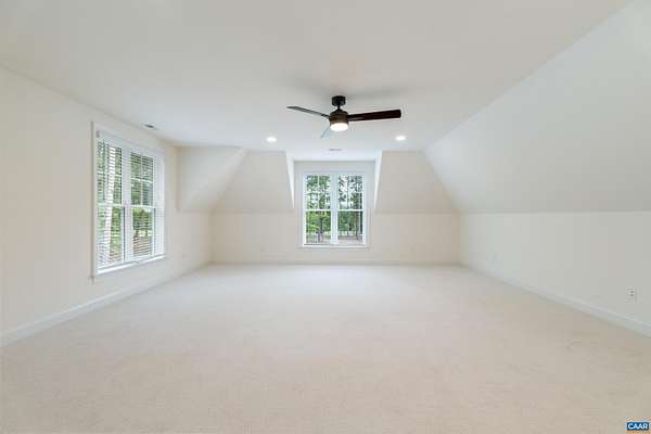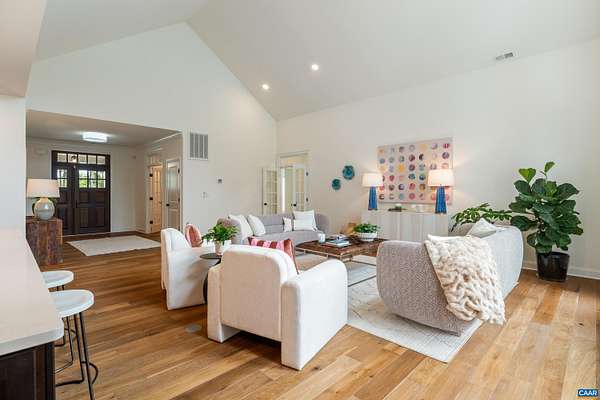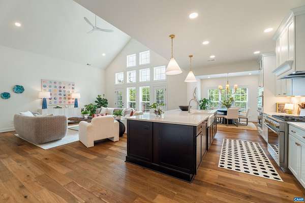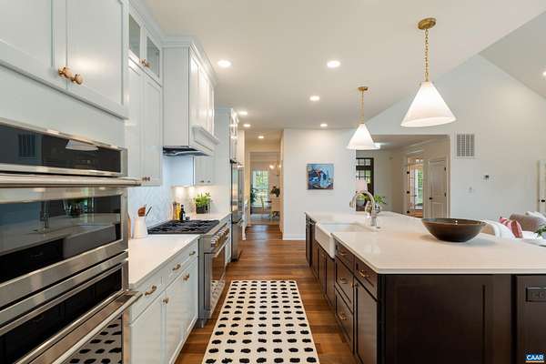 Set on a tranquil five-acre parcel just minutes from Keswick Hall and less than 15 minutes to downtown Charlottesville, this like-new home combines refined design with thoughtful upgrades. The modified floor plan enhances everyday living with a light-filled open concept that still preserves a traditional dining room and private office/den. The great room, with vaulted ceiling and seamless patio access, adjoins a gourmet kitchen outfitted with GE Monogram appliances, quartz countertops, and both a walk-in and butler's pantry. The primary suite, privately tucked away, features a spa-like bath and enlarged walk-in closet. Two main-level guest bedrooms and a well-planned laundry complete the first floor, while an upstairs loft with full bath and bonus room offers flexibility for a fourth bedroom or retreat. Surrounded by farms and conservation land, the property enjoys a peaceful setting with seasonal mountain views and sunsets from the expansive bluestone patio. Level and mostly cleared, the land offers endless potential for gardens, outbuildings, or a pool. Elegant, practical and well-appointed, this property embodies the best of Virginia country living with all the convenience of a brand-new home.