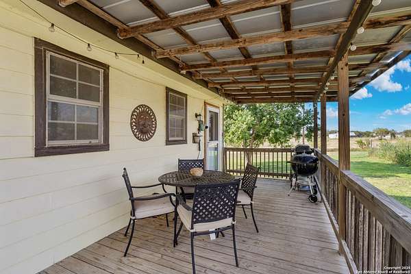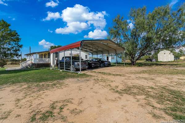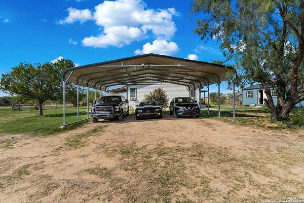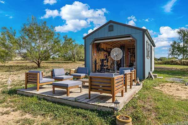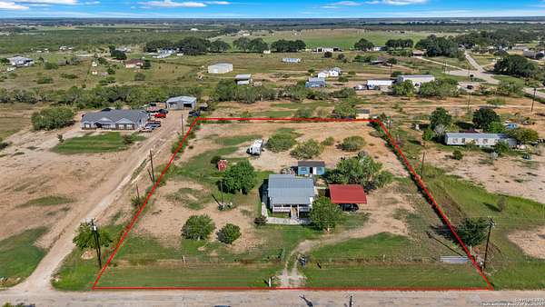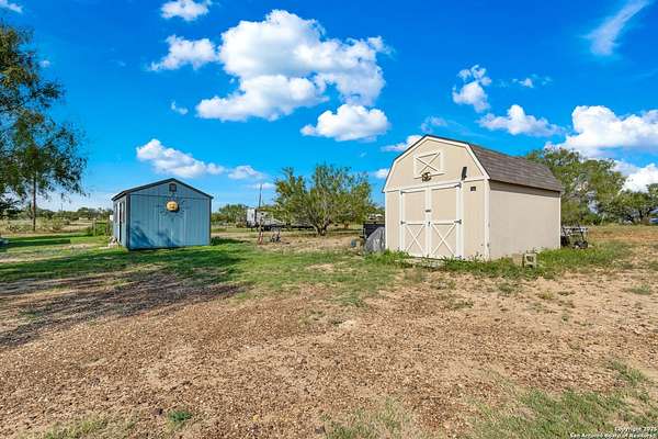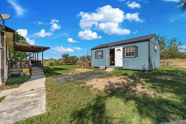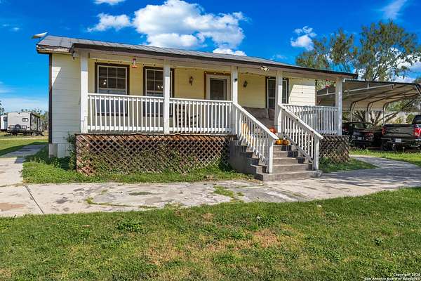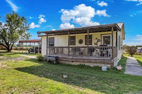 Welcome to 240 County Road 775 in Devine, Texas a charming 2-bedroom, 1-bath home that blends modern updates with the freedom of country living. Sitting on 1.62 acres, this property offers endless possibilities with no HOA and little to NO restrictions, giving you the flexibility to truly make it your own. The home features a durable metal roof, easy-to-maintain flooring with no carpet, ceiling fans throughout, and a utility room for added convenience. The kitchen is outfitted with sleek quartz countertops and stainless steel appliances, while the bathroom boasts a stand-up tile shower with glass doors. Enjoy the outdoors from both a front and back deck, perfect for relaxing or entertaining. In addition to the home itself, the property includes two storage sheds and a 3-car carport, providing ample space for tools, equipment, and vehicles. With plenty of land, you'll have room to garden, expand, or simply enjoy the privacy and peace of country life. Living in Devine offers the best of both worlds: small-town charm with close-knit community values, yet just a short drive to San Antonio for work, shopping, and entertainment. Residents enjoy a laid-back lifestyle, family-friendly events, and attractions like Devine Acres Farm, local parks, and seasonal festivals. The area is served by Devine ISD. If you've been searching for a home that offers wide open space, and the freedom to create the lifestyle you want, this property is ready to welcome its next owner.
