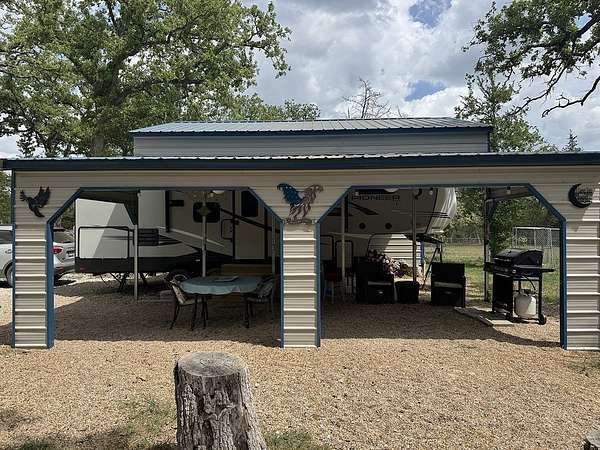 Looking for your escape or retirement place? This fenced property is just over a half-acre and includes a pre-engineered metal building with storage and covered outdoor area. RV is included too! The lot is cleared with scattered oaks throughout. Electricity, water and aerobic septic system is in place. A hot tub for relaxing soaks, firepit for starry nights and a bathhouse with outdoor shower. There is also additional water, electric and septic lines for service for a future home. The current tiny home is NOT included and will be moved after closing. Buyer to leaseback to seller for 30 days to allow time to move the tiny home. Enchanted Oaks subdivision has light deed restrictions but no HOA. Community water and Bluebonnet electric service the area. Boating, fishing, camping and hiking are less than 3 miles away at Lake Somerville State Park & Trailway. https://tpwd.texas.gov/state-parks/lake-somerville Don?t miss this opportunity for a move in ready retreat!