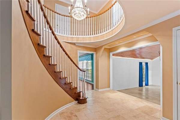 The 6.2 acres are truly the star of this property. A rare and remarkable setting in Bogart-just minutes from Athens-this exquisite custom estate is nestled on a quiet, tree-lined street and surrounded by mature hardwoods, open pastures, and fruit trees, offering exceptional privacy, beauty, and versatility. Inside, timeless craftsmanship and architectural detail set the tone. Arched double mahogany doors open to a dramatic barrel-vaulted foyer anchored by a grand circular staircase crafted from imported wood and crowned by a crystal chandelier. Elegant formal living and dining rooms provide the perfect backdrop for entertaining, while the inviting keeping room with fireplace and adjoining breakfast area create a warm, everyday gathering space. The well-appointed kitchen overlooks the covered porch and serene outdoor living areas, making it equally suited for quiet mornings or lively gatherings. The main level offers a luxurious primary suite with a spa-inspired bath featuring an oversized walk-in shower, soaking tub, and custom dressing room. Additional main-level spaces include a full guest bath, a sun-filled den with powder room, a spacious window-lined sunroom, and a generous flex space ideal for a home office, gym, playroom, or media lounge. A large laundry and utility room adds exceptional functionality with extensive built-in cabinetry, office workspace, utility sink, backyard access, and laundry hookups. Upstairs, a second primary suite features a renovated bath, abundant closet space, and a triple window overlooking the rolling land beyond. Three additional bedrooms and a full bath are tucked into a private wing, offering comfortable accommodations for family or guests. Outdoor living is just as impressive. Enjoy sweeping views from the expansive covered porch or gather around the elevated bluestone courtyard with a wood-burning fireplace-perfect for year-round entertaining. A covered breezeway connects to the detached three-car garage, which includes finished bonus space ideal for a studio, workshop, or guest retreat. The grounds are thoughtfully designed for both beauty and function, featuring fenced pastures, landscape lighting, a full security system, abundant storage, and an encapsulated crawl space. Horse-friendly and rich with potential, this one-of-a-kind property offers timeless style, modern comfort, and an exceptional lifestyle in one of Bogart's most desirable settings-just minutes from Athens.
