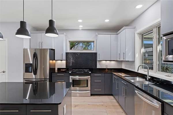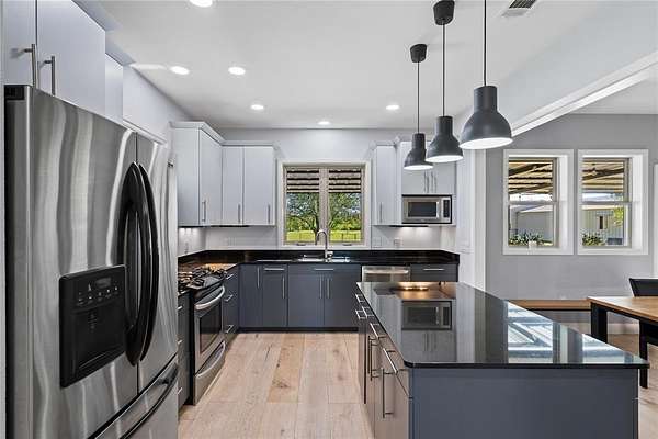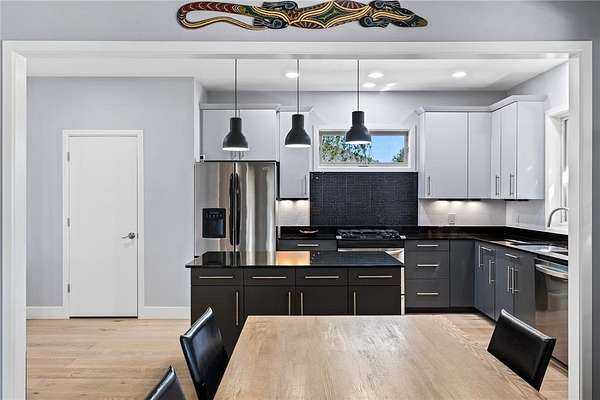 - Built-In Features, Decorative Lighting, Dry Bar, Eat-In Kitchen, Kitchen Island, Natural Woodwork, Pantry