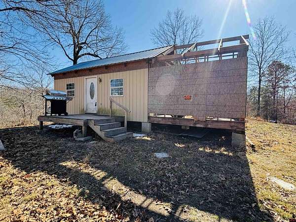 Set at the end of the road, this 14.79 acres m/l in Yellville offers privacy, utilities in place, and a strong head start on your Ozark getaway. The property includes a partially completed 1-bedroom, 1-bath cabin, with all lumber and building materials on site to be conveyed at closing, allowing the next owner to complete the space as intended. A drilled well and 200-amp electric service are installed, making it easy to use right away as a hunting cabin, weekend retreat, or base camp while you build. The land is primarily wooded, with a level building area and terrain that transitions from gently sloped to steep, creating both usable space and a natural buffer of privacy. With no restrictions, this property also allows flexibility for RV use and a wide range of plans. If you've been looking for acreage with privacy, infrastructure, and potential, this one checks all the boxes.
