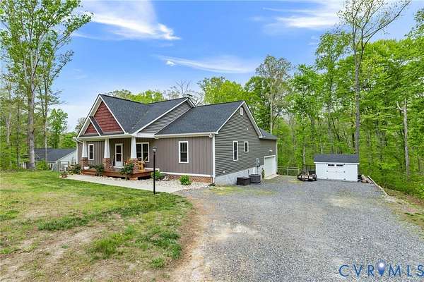 Welcome to your country retreat set on 3.35 wooded acres, where modern comfort meets peaceful living. Built in 2023 and thoughtfully designed with an open-concept floor plan, this home offers a seamless blend of style, functionality, and serenity. Inside, the spacious layout is perfect for both everyday living and entertaining, with an effortless flow through the main living areas. The kitchen is the heart of the home, featuring granite countertops, shaker-style cabinetry and stainless steel appliances. Recessed lighting and soft neutral tones enhance the open, airy feel, while the large sink with a high-arc faucet overlooks the adjoining living area-keeping you connected to guests and family. The laundry room/ mud room offers ample storage space and access to the half bath. The heated and cooled two-car garage provides year-round comfort and versatility-ideal for storage, hobbies, or a workshop. Plus, the home is generator-ready, offering added peace of mind no matter the season. Whether you're enjoying quiet mornings surrounded by nature or hosting gatherings in your bright, open living space, this property delivers the best of country living with modern conveniences. A rare opportunity to own a nearly new home in a tranquil, expansive setting.