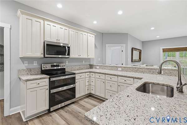 - Bath In Primary Bedroom, Dining Area, Double Vanity, Granite Counters, High Ceilings, Pantry, Recessed Lighting, Walk In Closets