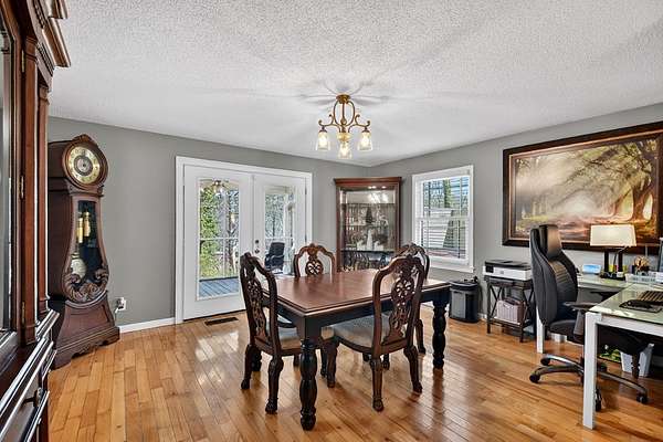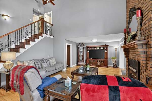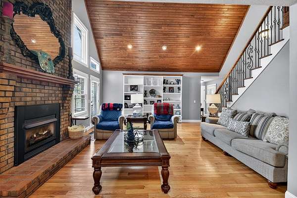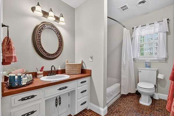 LOCATION, LOCATION, LOCATION! Less than a mile from downtown Ellijay, this beautifully maintained 3BR/2.5BA two-story brick home sits on 3.45 private acres, offering timeless character and exceptional indoor-outdoor living. Situated on a spacious, gently wooded lot, the property features a metal roof, two-car garage, additional covered parking, and mature landscaping that creates both privacy and curb appeal. Inside, you'll find hardwood floors, a stunning floor-to-ceiling brick fireplace, and soaring ceilings accented by a warm tongue-and-groove wood ceiling that adds rich architectural detail. The open living area flows seamlessly into a spacious dining room and recently renovated kitchen, making it perfect for entertaining and everyday living.The primary suite is conveniently located on the main level and features a beautifully tiled shower and heated floors for added comfort. Also on the main level are a half bath and laundry area for easy accessibility.Upstairs, a loft overlooking the living room enhances the home's open feel and provides access to two additional bedrooms and a full bath — ideal for family or guests. Outdoor living truly shines with a screened-in porch overlooking the wooded backyard, a private fenced yard, and an expansive deck complete with pergola, hot tub, grilling station, and ample entertaining space. A charming courtyard-style brick patio adds even more character and privacy. Additional highlights include new Andersen windows with a transferable warranty for added peace of mind. This home offers the perfect combination of classic construction, functional layout, and inviting outdoor spaces — ideal for full-time living or a private mountain retreat just minutes from everything Ellijay has to offer. Come and move to the mountains!!!!