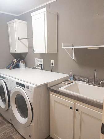 Nestled on a 2.37 acre corner lot, this beautifully maintained 3-bedroom, 2-bath manufactured home offers privacy, charm, and every modern upgrade you'd expect--and more. Exterior Features: Permanent foundation with full concrete slab and brick underpinning Two gravel driveways and underground utilities Upgraded siding, downspouts, and 200-amp service panels (interior & exterior) Leaf guard gutters installed in 2024 for easy maintenance Bermuda sod lawn Brand new 14x24 shed with dual lofts plus a 10x10 storage shed Interior Highlights: Spacious open floor plan Split bedroom layout Luxurious master suite with a soaking tub and separate tiled shower Two guest bedrooms with built-in desk nook for remote work or study Enclosed back porch off the laundry room and grilling deck perfect for year-round entertaining This home truly has it all--comfort, style, and space to breathe. Call Amy Williams to schedule a tour (912) 326-0685