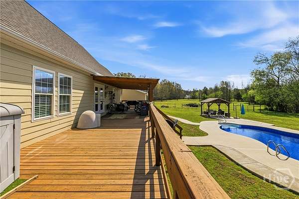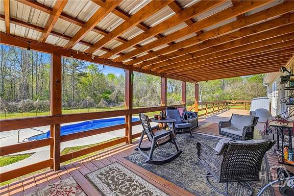 Welcome to your 10-acre retreat in the beautiful countryside of Danielsville! From the thoughtfully designed interior to some of the most stunning Georgia sunsets you'll find, this home will not disappoint. Covered front and rear porches, true oak hardwood flooring, and a wood-burning fireplace flanked by dual built-ins create an inviting atmosphere filled with warmth and natural light. The modern kitchen is equipped with stainless steel appliances, custom cabinetry, subway tile backsplash, LVP flooring, bar seating, and a bright breakfast/dining area. The main level features three bedrooms, including a spacious Owner's Suite with a beautifully renovated floor-to-ceiling tile shower. What truly sets this home apart is the versatile second level, offering endless possibilities-ideal for a home office, gym, media room, guest retreat, or potential for additional bedrooms. Looking for outdoor entertaining? Your private oasis awaits with a full-length rear deck and covered porch, saltwater pool with a brand-new liner (March 2026), pavilion, and fenced-in yard. Additional highlights include a breezeway garage and a unique 1950s 30'x55' block-built detached building-perfect for a workshop, extra garage space, or large-scale storage. With immediate access to GA-HWY 106, this rare homestead offers acreage, amenities, and convenience. Schedule your showing today and experience the best of country living at 240 Langford Carey Road!
