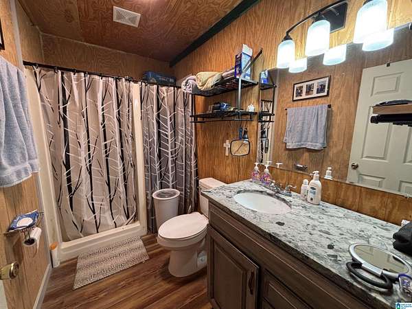 Imagine a place where you’re hidden and protected by the natural landscapes of the land. It’s almost, like living off grid behind a timberscape and down a long winding driveway to your homestead far away. To your surprise, you’ll find that it’s private but conveniently located 13 minutes from Walmart in Springville and moments to Odenville. Let your imagination take off when you arrive there. It’s 1BR 1BA Cabin built in 2006 and a small bedroom recently expanded into the Barn. Continue the expansion into the attached Barn area for a complete Barndo Build-out or use the Cabin as mother-in-law suite. Room to Add another Cabin as well for the Compound. Features galley Kitchen area, room for small table then have a small den. The cabin is approximately 818 Sq. Ft. with the attached Barn having 1556 Sq. Ft. Property is mostly surround large timber tracts and One way access to the home down a long driveway which is perfect for privacy and protection. Plenty of wildlife to watch.