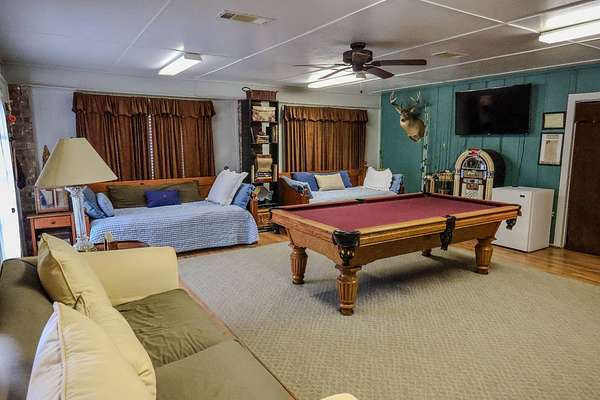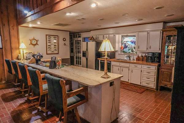 Green Acres - Exclusive Waterfront Property on Toledo Bend A rare opportunity to own a private waterfront retreat with proven income potential. Situated on approximately 6.11 acres of deep-water frontage, this exceptional Toledo Bend property offers privacy, tranquility, and a fully operational turnkey rental business. An additional +-9.46 acres is available for purchase if desired. Main Residence - 2,760 Sq. Ft. (Mostly Furnished) Originally built in 1970; remodeled in 2005 3 Bedrooms | 3 Bathrooms Traditional brick and frame construction Open concept living and kitchen with vaulted ceilings and bar seating Kitchen features granite and butcher block countertops Appliances included: refrigerator, dishwasher, microwave, oven, washer & dryer Flooring includes tiles, vinyl, engineered wood, and carpet in the primary bedroom only Game room with pool table and shuffleboard table Currently operating as a successful Bed & Breakfast Guest Lodging / Rental Accommodations (Fully Furnished) The Rooster's Lodge - 1,824 Sq. Ft. Metal building converted to rental in 2009 2 Bedrooms | 1 Bathroom 8 beds Full kitchen Four bay roll-up doors Massive, covered parking and boat storage Large, covered patio ideal for gatherings The Bird's Nest - 864 Sq. Ft. Built in 2011 2 Bedrooms | 1 Bathroom Full kitchen Two decks overlooking the property The Tiger's Den - 300 Sq. Ft. Added in 2014 1 Bedroom | 1 Bathroom Full kitchen Cozy shotgun-style layout Waterfront Amenities Approximately 150+- feet of deep-water frontage Private boat launch Expansive boathouse with two electric boat lifts Fish cleaning station with fresh water Large, covered seating and entertaining area Floating swim dock Trapeze swing Included With Sale Pontoon boat Golf Cart with charger Two canoes and two kayaks Seven leather recliners Two washers and two dryers Custom poker table in main house Property Highlights This one-of-a-kind Toledo Bend lakefront property delivers the perfect balance of luxury living, recreation, and income generation. Whether you envision a private family retreat, an investment property, or a combination of both, Green Acres Lodge offers unmatched versatility and lakefront appeal.