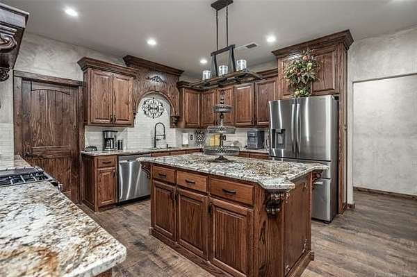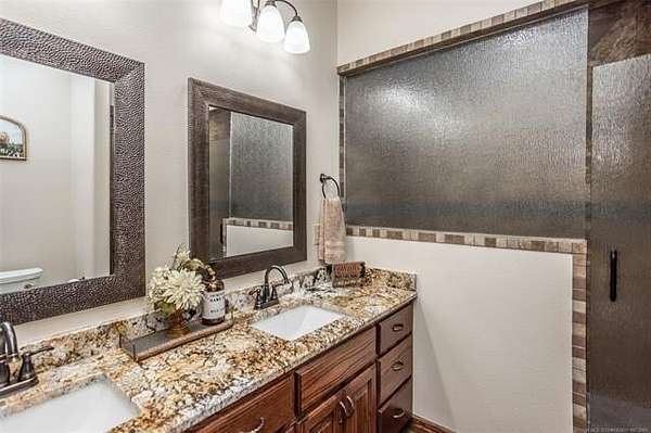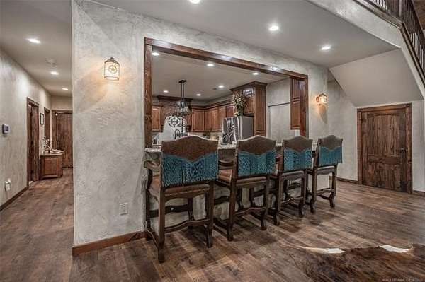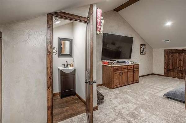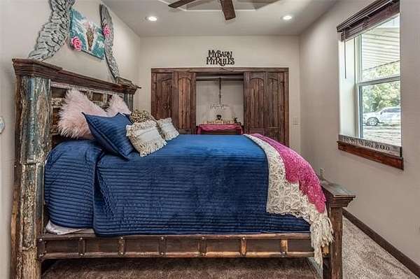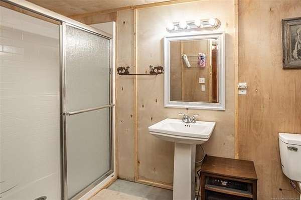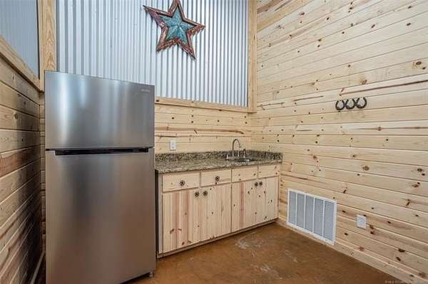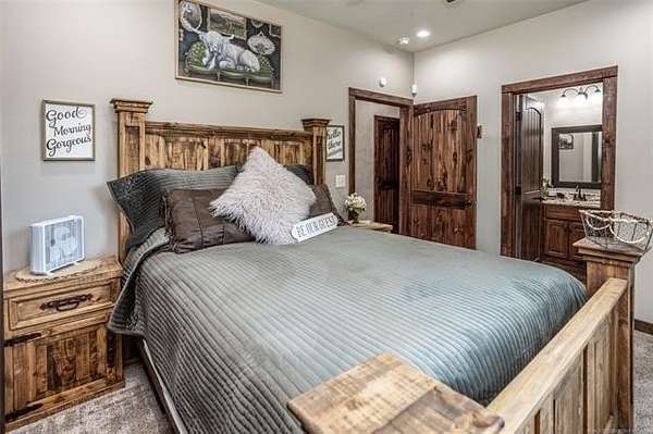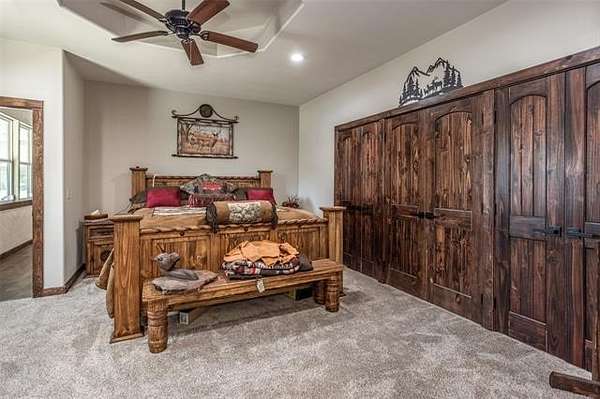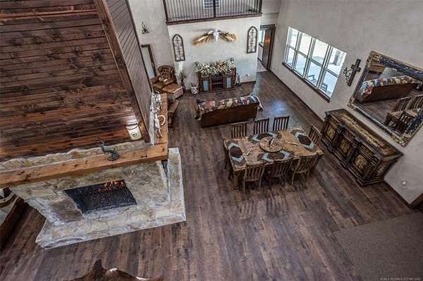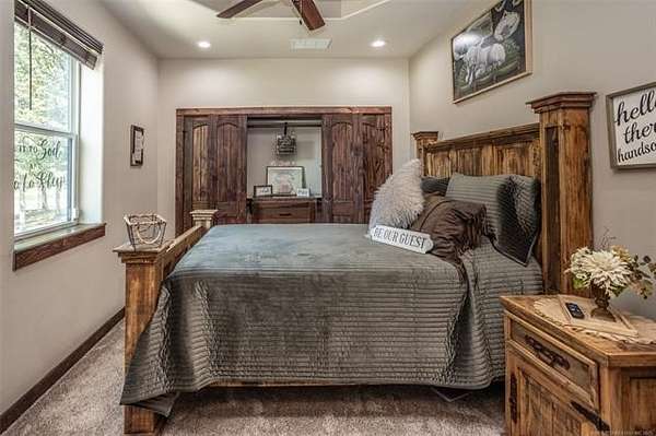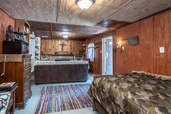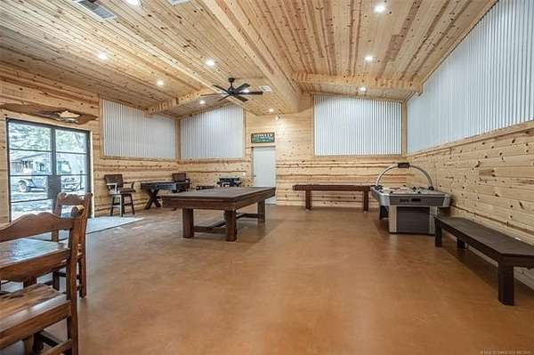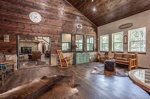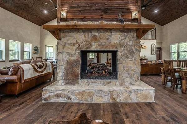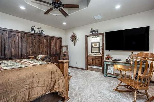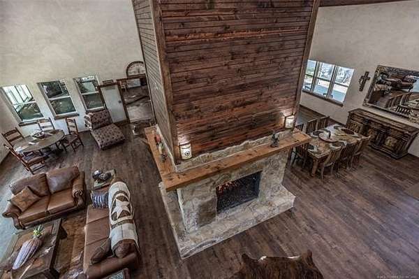 Welcome to one of Oklahoma's premier luxury hunting lodges--240 Magnolia Lane, a 146-acre retreat custom-built for the serious outdoorsman and those who entertain at the highest level. This one-of-a-kind estate combines world-class recreational amenities with refined lodging and gathering spaces, making it ideal for private use, corporate retreats, or high-end group hosting. Trophy whitetail deer, wild hogs, turkey, and ducks roam the hardwood-rich terrain, which includes multiple deer stands, miles of ATV trails, two stocked ponds, and a creek with a steel bridge crossing. At the heart of the property is an expansive main lodge featuring vaulted ceilings, rich woodwork, and a dramatic four-sided stone fireplace that anchors an expansive great room with open dining and multiple seating areas. The chef's kitchen is designed for entertaining, and each bedroom includes a private en-suite bath for guest comfort. A large 60x30 event-ready climate-controlled party barn features a bar, bathroom, and storm shelter. Additional lodging includes a restored bunkhouse with fireplace, full bath, and sleeping for four. A large pole barn stores all recreational equipment and vehicles. Six RV hookup sites accommodate overflow guests. Outdoor gathering areas include a covered porch overlooking the pond, a firepit, outdoor bar, and horseshoe pit. This exclusive property is offered fully operational, with furnishings, decor, and equipment available at additional cost. Conveniently located just 1.5 hours from McKinney, Texas, and 30 minutes from Choctaw Casino, this exceptional retreat provides easy access while maintaining complete privacy and seclusion.