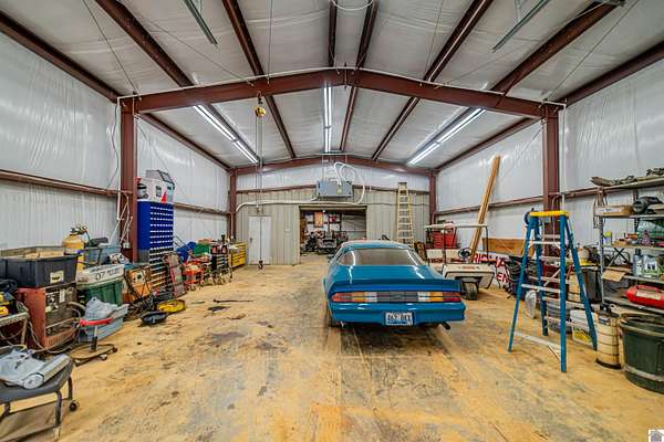 Welcome to your rural retreat on nearly 23 acres offering the perfect blend of modern updates, usable acreage and exceptional outbuildings. This beautifully maintained 3-bedroom, 3 full bath home features a primary suite with updated ensuite, an open-concept layout with a spacious living room flowing into a renovated eat-in kitchen with granite countertops and stainless steel appliances. Steps away the patio with salt water hot tub is perfect for relaxing and enjoying the expansive views. The finished basement extends the homes living space with a large family room, full bathroom, utility room and custom wood wall finishes, ideal for entertaining, hosting guests, or multi-generational living. Outdoor enthusiasts and hobbyists will love the 30' x 80' heated and cooled shop, perfect for a home business, workshop, or equipment storage. If you're searching for quiet country living, a hobby farm, or rural property with room to live, work, and play, this one is a must see!