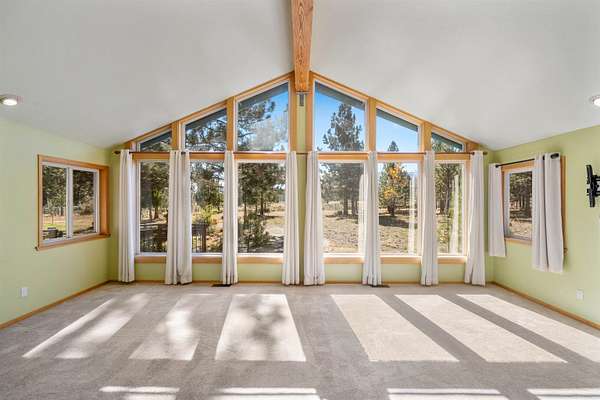 Set on a sunny, mostly level 5-acre parcel in the peaceful community of Calpine, this exceptional property offers year-round accessibility and plenty of outdoor space to enjoy the natural surroundings. The main home spans over 1,900 sq ft with a thoughtful ranch-style layout that blends comfort and practicality. Bright, open living areas flow seamlessly between the living, dining, and kitchen spaces, featuring vaulted ceilings, a pellet stove, and a wall of windows framing serene meadow views and surrounding trees. The home offers 3 bedrooms, including a spacious primary ensuite with a generous walk-in closet and direct access to both the front and rear decks. Two guest bedrooms and a second full bathroom across the home provide just the right amount of separation, while a roomy entryway, versatile office nook, and large laundry room complete the layout. An oversized detached 2-car garage provides convenience with a drive-through door, workbench, and ample overhead storage, making it ideal for vehicles, tools, or outdoor gear. A separate cabin with its own septic system adds even more charm. Rustic wood finishes, soaring vaulted ceilings, one bedroom, one bath, a full kitchen, and a fun ladder loft make this space perfect for guests, hobbies, or a cozy mountain getaway. From morning coffee on the deck to exploring your 5-acre property, this home offers the perfect blend of comfort, versatility, and serene outdoor living. Come see it for yourself!