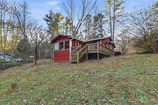 2 bedroom 2 bath on 2.19 acres+- Cherokee County, NC! Come visit this mountain cabin conveniently located near Murphy and Andrews. The home offers an open floor plan with a large flagstone fireplace in the living room. The kitchen is convenient and keeps you actively involved with your family. A sunroom is a great place to relax and enjoy a mountain view. The larger bedroom offers a safe step walk-in tub. Some other features that come with a home gas monitor, heat, partially paved drive, shared well, storage building, washer and dryer, fridge, and stovetop. Home is centrally located near the Erlanger Murphy Medical Center and the Cherokee casino, with plenty of opportunities to eat or shop in nearby towns.