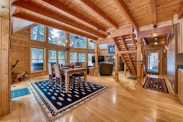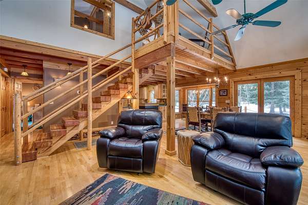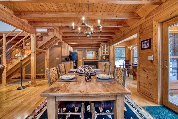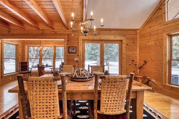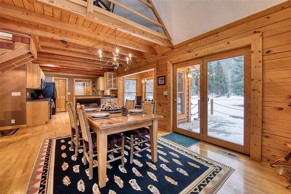 Tucked away on 10 pristine acres, this inviting log home offers a rare blend of warmth, privacy, and boundless outdoor adventure. Bordering Forest Service land with direct river frontage, the setting feels secluded yet accessible year-round. Step inside & feel instantly at home, where rustic craftsmanship meets cozy comfort. A screened porch with a crackling fireplace invites long evenings listening to the river drift by or stories shared late into the night. Outside, the land opens up beautifully with tranquil ponds, & a large barn/shop perfect for hobbies, equipment, or creative pursuits. Exploration is limitless hike, ride, or wander straight from your property. Fly fishing here is truly exceptional, with renowned waters just steps away. In winter, skiing is within 30 minutes, while every other season brings hiking, wildlife, and endless recreation. This is more than a home-it's a retreat, a basecamp, and a place to slow down, breathe deep, and enjoy the best of mountain living.