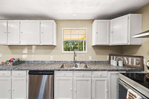 - Dishwasher, Electric Oven, Electric Range, Refrigerator, Stainless Steel Appliance(s)