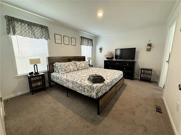 Welcome to 240 Plum Point Rd cottage #16. Come on in and enjoy the peacefulness of this 3-bed, 2-full bath, vacation home with an open floor plan and 1,128 SqFt of living area. Built in 2021, this charming manufactured home comes fully furnished with what you see (minus a few personal items) plus an electric golf cart. Looking for a great investment? This unit is a working AirBnB and has received 5-star reviews for years since October 2023. Centrally located in Himrod, you're in the middle of the best winery's, restaurants, shopping you can find. Enjoy the shared beach, including a fire pit, chairs, gazebo, picnic tables, paddle boards and kayaks. HOA and land lease ($900mo.) include land taxes, water, sewer, maintenance (lawn, snow removal, garbage collection) dog park and community garden.