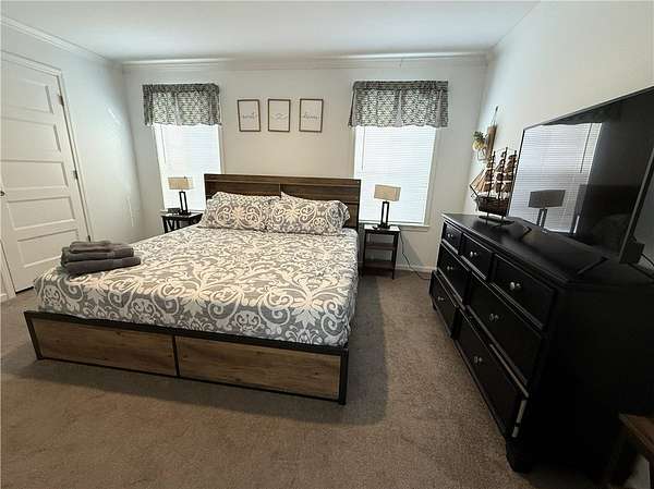 - Bedroom On Main Level, Cathedral Ceilings, Eat In Kitchen, Main Level Primary, Primary Suite, Separate Formal Living Room, Solid Surface Counters
