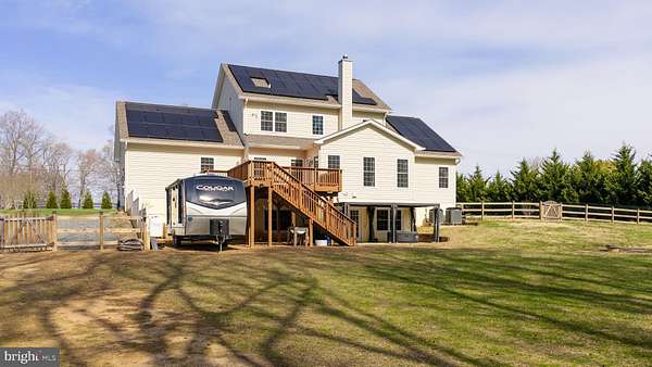 This stunning, energy-efficient retreat set on 4.2 picturesque acres effortlessly combines modern upgrades with the tranquility of countryside living. Thoughtfully designed for both comfort and sustainability, the home boasts a cutting-edge solar panel system capable of supporting EV chargers and RV hookups, a whole-house regenerative water filtration system with UV light technology, a premium water softener, and a recently upgraded well with a new pump and pressure tank. A brand-new electric water heater rounds out the suite of forward-thinking conveniences. Outdoor enthusiasts will revel in the extended driveway with RV parking, a fully fenced yard perfect for pets or livestock, and a landscape teeming with charm-a small orchard, vibrant wildflowers, privacy-enhancing trees, and even a serene woodland walking path. The small chicken coop satisfies that farming itch. Multiple outdoor spaces invite you to soak in the peaceful surroundings, whether it's on the expansive backyard deck, the patio beneath a sleek louvered pergola, or the welcoming front porch. Store all the fun lawn toys in the oversized shed. Inside, the home continues to impress. The newly finished basement is a showstopper, featuring a full bath, a sleek bar, a private gym, and a cutting-edge theater room. On the main level, you'll find the primary bedroom with its own full bath and two closets. At the heart of the home, the large kitchen is the center of this open floor plan and flows into the formal dining room-an entertainer's dream. Need a dedicated home office? Yes, it has that too! And for those crisp, chilly days, retreat to the inviting sunroom, where you can cozy up by the roaring gas fireplace and watch the beauty of nature unfold just outside your window. For those with VA eligibility, assuming a VA loan with an interest rate of 4.5% is a possibility.