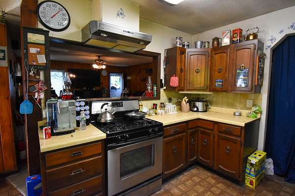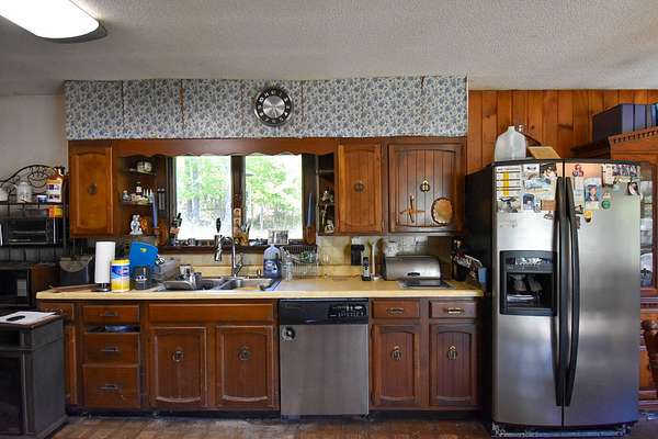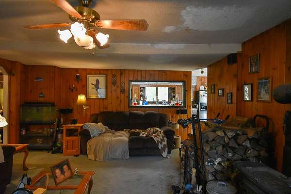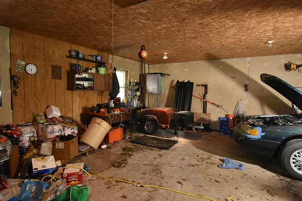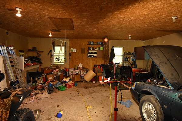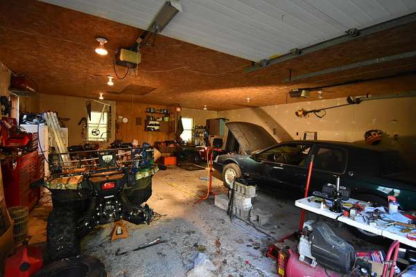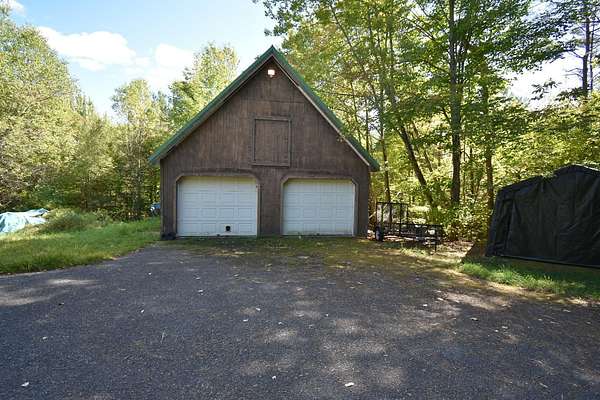 Tucked away at the end of a long, secluded driveway, this charming ranch-style home offers peace, privacy, and endless potential. Surrounded by woods, this property is full of character and has a cozy cabin feeling. The main floor features 2 bedrooms and 1 full bathroom, along with a spacious living area warmed by a wood-burning stove. Upstairs, you'll find an unfinished loft space, ready to be transformed into a third bedroom, office, or bonus room to suit your needs. Enjoy the outdoors from the large front deck, ideal for relaxing or entertaining. A standout feature is the detached oversized two-car garage with an upper loft-perfect for additional storage, a workshop, or future expansion. While the home is a handyman special, it offers great bones and tons of rustic charm-an excellent opportunity to create your dream retreat in the heart of the Adirondacks