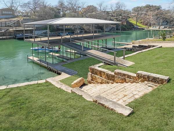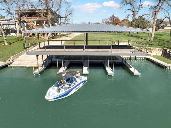 Are you contemplating between the lake life and the river life? This lot offers the best of both worlds. You can literally float the Comal River and end up at your property a few hours later. Then again, you can hop in your boat, and you have 7 miles of gorgeous Lake Dunlap to enjoy. This prime lot is situated at the top of Lake Dunlap, offering the clearest water on the entire lake. In fact, the water quality here surpasses that of any other property along the Guadalupe River-style lakes. With 98 feet of pristine, heavily improved waterfront, this is where lake life turns legendary. Picture this: your crew cruising in, tying up to four covered boat slips (electric lifts could be easily added) or the oversized dual slip that could be converted to your very own private beach! This isn't just a dock; it's a lakeside headquarters. The fun doesn't stop at the water's edge. Launch straight into adventure with your private boat ramp or make a splash from the elevated concrete entertainment deck, complete with a ramp and dive-ready launch pad. Broad stone steps carve a path to the water, inviting everyone to dive into the good life. Positioned along the main channel within a no-wake zone, this location ensures a safer and more peaceful swimming area for your family and friends to enjoy. This 0.43-acre lot isn't just land--it's your ticket to endless summer parties, serene sunset views, and a lifestyle that screams "I've made it."