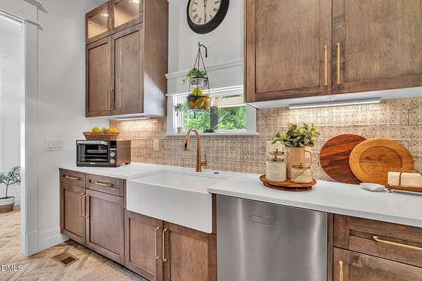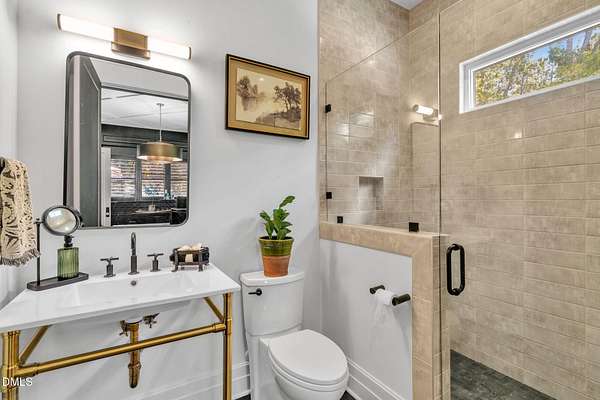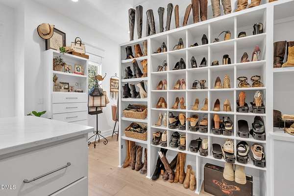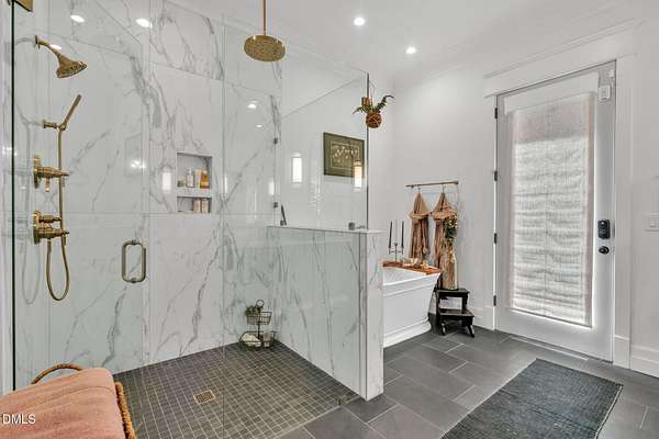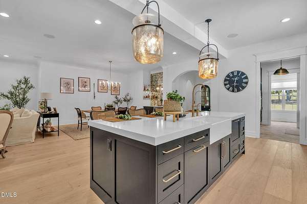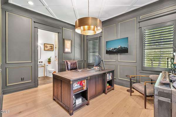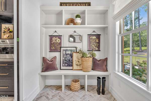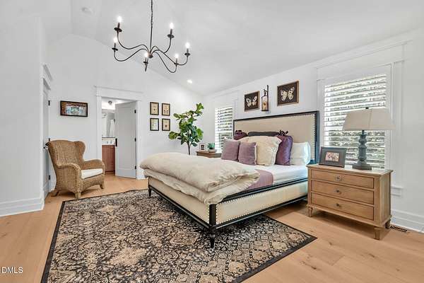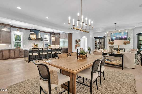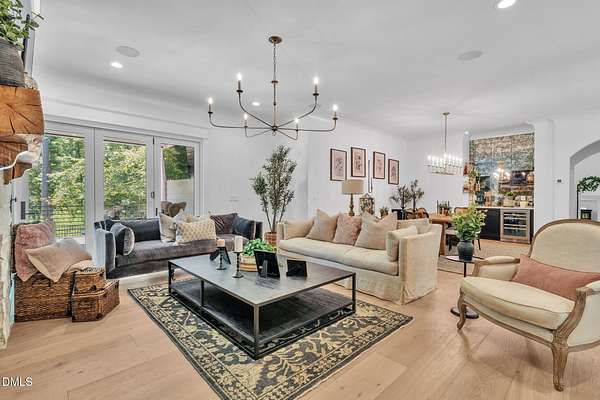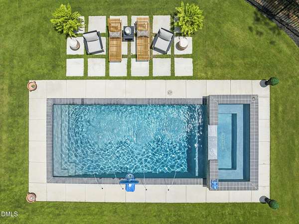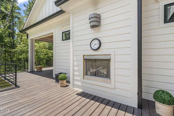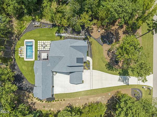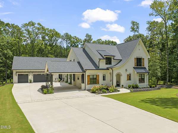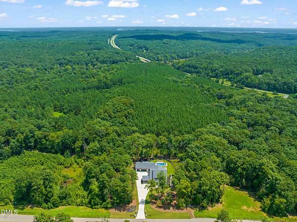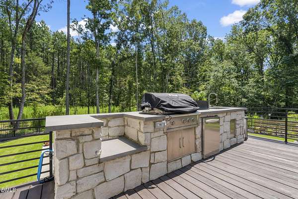 Welcome to your private paradise-this stunning home lives like a vacation retreat! Situated on a spacious 2.62 acre lot, step into the backyard oasis, where a sparkling in-ground pool and spa (under w arranty), outdoor kitchen, and generous patio space set the scene for unforgettable gatherings. Whether you're hosting weekend barbecues, relaxing by the pool, or enjoying an evening under the stars, this home is built for indoor-outdoor living at its best. Exceptional 4-bedroom custom-built estate backing up to state park land. This luxurious home offers seamless indoor-outdoor living with expansive covered and sun decks (being re-stained), and a full outdoor kitchen. Inside, enjoy soaring 10' ceilings, an open-concept layout, extra-wide European white oak engineered hardwood planks, and a stunning 2-sided stone gas fireplace connecting the living room to the deck. The gourmet kitchen is a chef's dream featuring a large center island, custom cabinetry, double 30'' Designer refrigerator columns from Sub-Zero, a Wolf gas range & hood, 2 dishwashers - 1 in the kitchen island and 1 in the spacious butler's pantry with a built-in freezer and built-in Miele coffee machine. The main-floor primary suite is a true retreat with a spa-like bath including an oversized rain-head shower, soaking tub, and an enormous walk-in closet with center island. A main-floor office with private bath offers ideal flex/5th bedroom space. Additional highlights: 3-car garage with pre-wire for EV car charger, pet washing station, porte-cochere, and unmatched privacy in a serene wooded setting. Motorized patio screens, 3rd garage bay large enough for a boat, central vacuum and multi-generational home design. Less than ten minutes from Jordan Lake State Recreation Area.