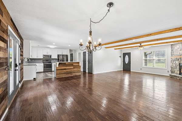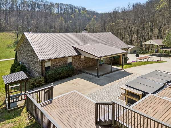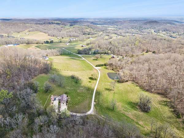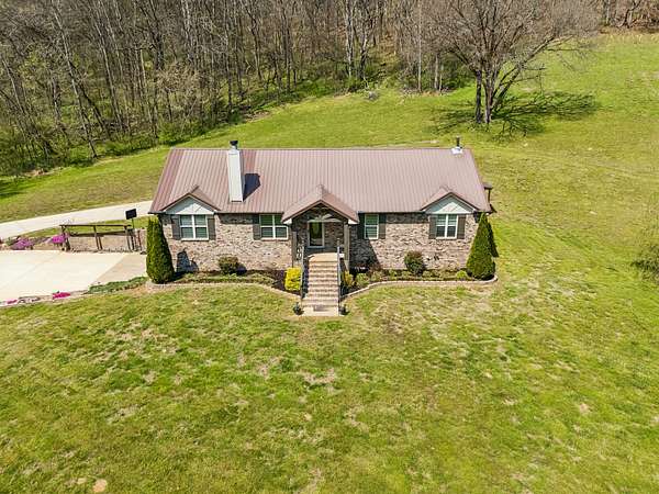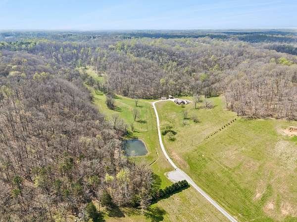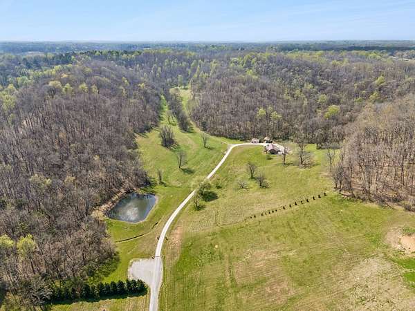 Minutes from Pulaski’s town square yet a world of your own, The Reserve at Scenic Valley sits at the end of a quiet cul-de-sac with rolling fields, mature woods, and a private pond — 71.5 acres of genuine Tennessee privacy. This expansive property includes a 20x30 shop equipped with power, a lean-to, & pole barn ideal for hobbyists or storage needs. Built in 2016, this brick 2860 sq ft home features three bedrooms, two full baths with tile showers, & a family room centered around a stone woodburning fireplace. Hardwood floors flow from the living area & dining room to the kitchen where a large island, stainless appliances, & a pantry make the space as functional as it is inviting. The finished basement is a space built for entertaining that includes a custom oak bar with granite countertop, wood-burning stove, & a fourth optional bedroom with a full bath. Step outside to the composite deck where a swim spa & hot tub invite you to unwind. The serene pond draws wildlife year-round, and the land’s mix of open fields and mature hardwoods creates premier hunting habitat with food plot potential. The property has been subdivided into individual lots, offering flexibility for future development or a family compound. Updated for today's buyer: new HVAC in 2024, e-shield insulation, & high-speed internet is available!