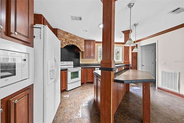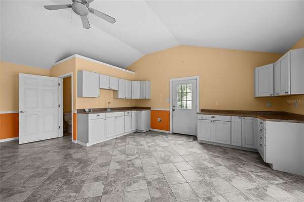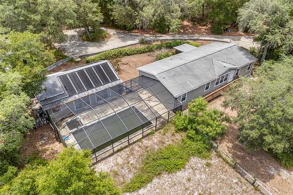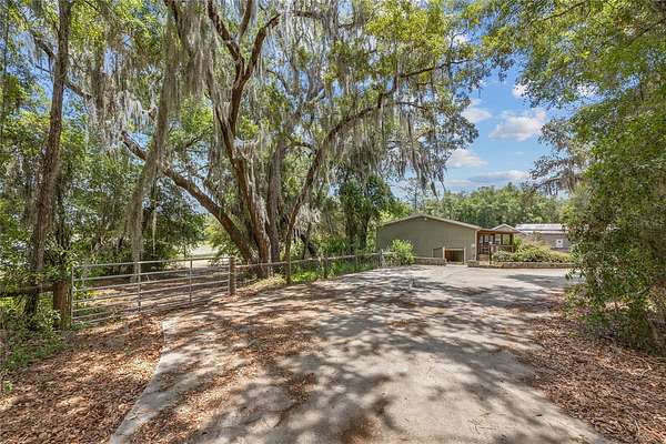 Welcome to this charming lakefront pool home featuring a main house with 3 bedrooms and 2 bathrooms, plus a cabana with a full bathroom, and large metal storage building on 7.81 acres! As you approach the home you will appreciate the secluded feel, natural landscaping, and the expansive view of Halfmoon Lake. The main house has 1,890 sqft of living space with 3 bedrooms and 2 bathrooms, built in 2012. Opening the front door, you will find yourself in the foyer leading to the light and bright open concept living room, kitchen, and dining room. The kitchen is sure to impress the chef of the family with plenty of cabinets, lots of counterspace, and a breakfast bar. To the right you'll enter the primary bedroom which has a spa-like ensuite bathroom featuring a double vanity, walk in shower, and large soaking tub. Two spacious secondary bedrooms and the secondary bathroom are to the left of the living room. With an indoor laundry room and screened in back porch, this home is the perfect blend of comfort and convenience. Outside of the main house, enjoy swimming with friends and family in the fully screened inground pool and heated spa, and relax in the attached cabana. The heated and cooled cabana is more than 860 sqft and features a kitchenette and full bathroom, offering plenty of room for hosting guests for long weekends and holidays, or as an in-law suite. At the end of the circular drive is a metal building with more than 1900 sqft of indoor space, electricity connected, an oversize roll-top entrance door, and can be used as a garage, storage building, workshop or anything else your heart desires. The 7.81 acre property also includes RV hookups and a propane tank for heating the hot tub. Enjoy the peace and beauty of rural living while still being within a short drive to local conveniences since you're only 30 minutes from Gainesville. Make your appointment today to see this slice of country paradise!